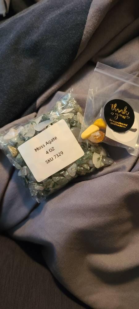 I absolutely love these moss agate chips! and the little extras were amazing 🥰 will definitely purchase from you again in the future. every little piece is amazing