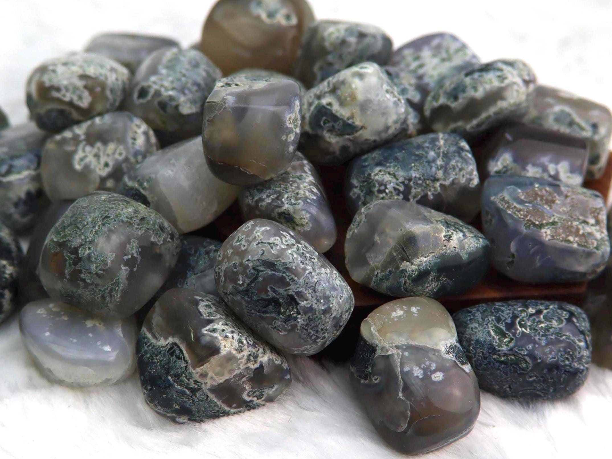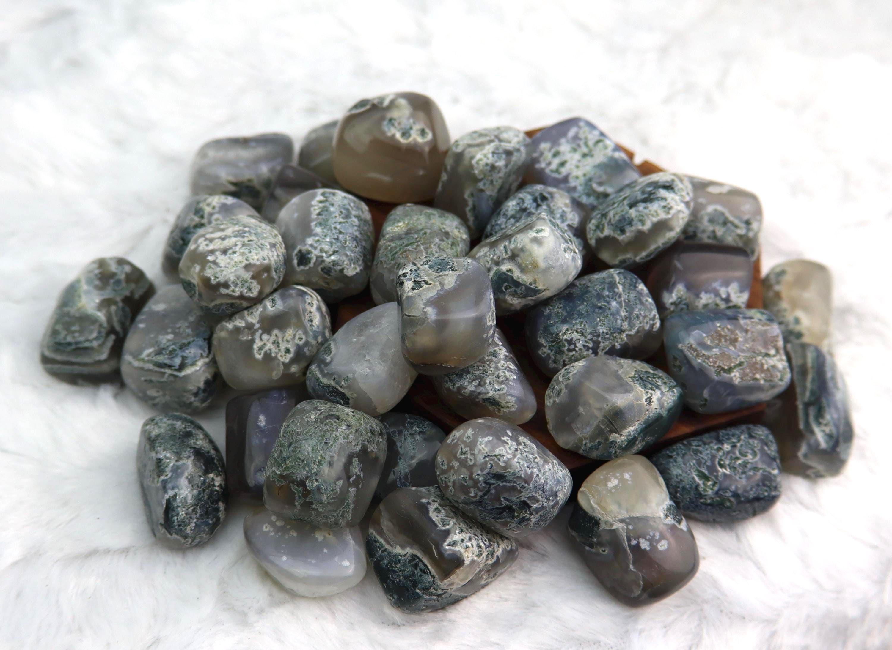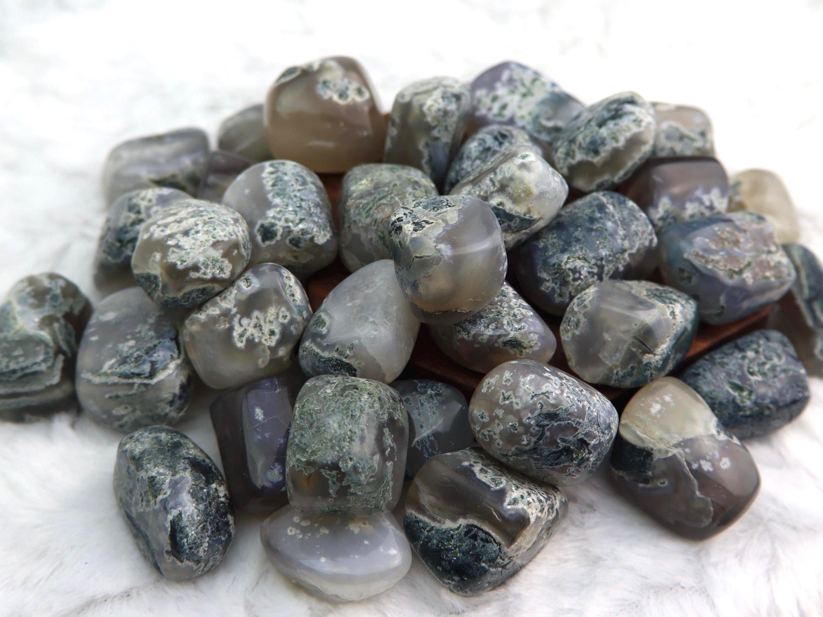 This listing is for 1 (ONE) Moss Agate Tumble Please choose the weight range you would like your tumble to be chosen from