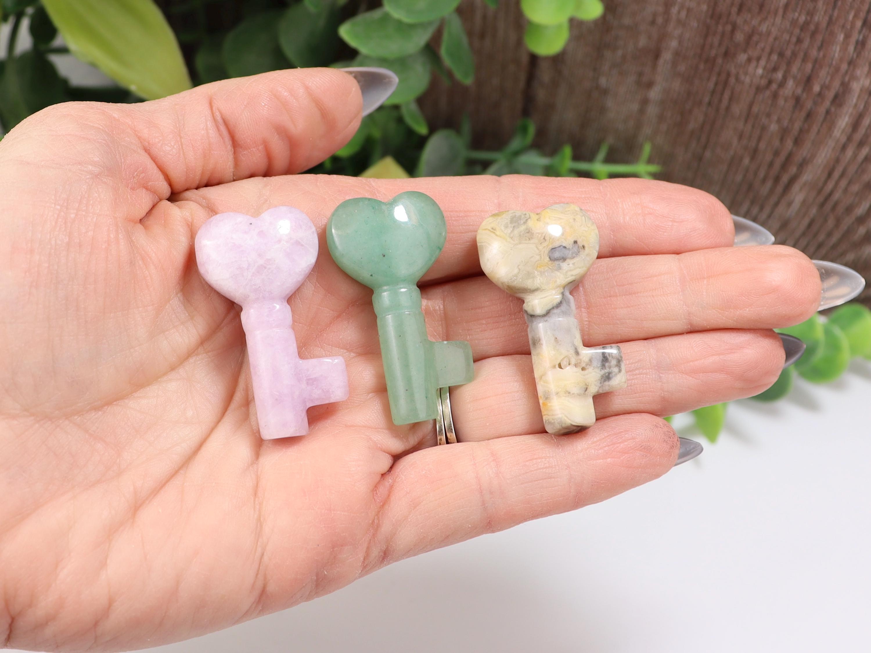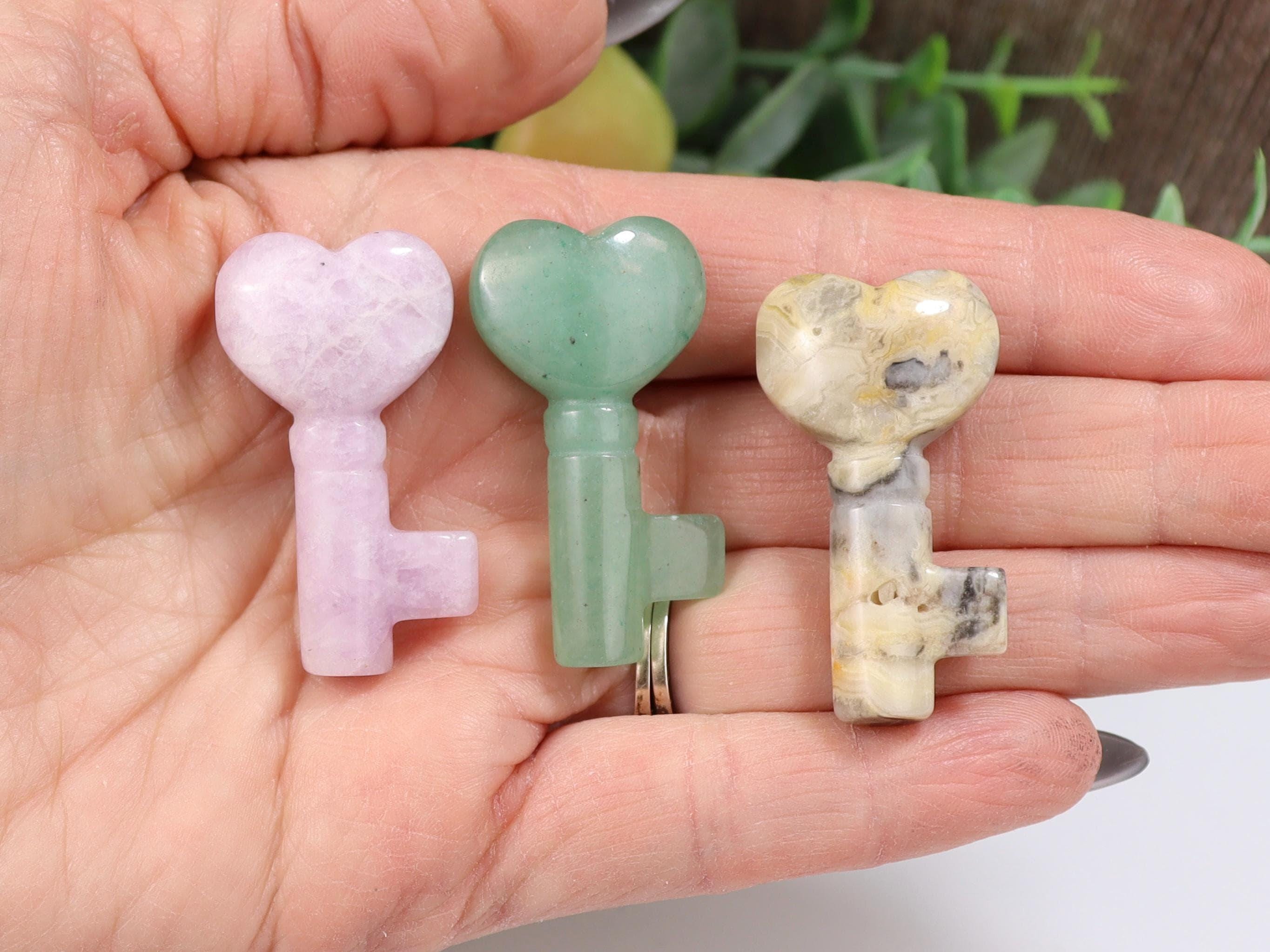 This listing is for 1 (ONE) Crystal Heart Key Carving Please choose the stone type you would like from the drop down menu