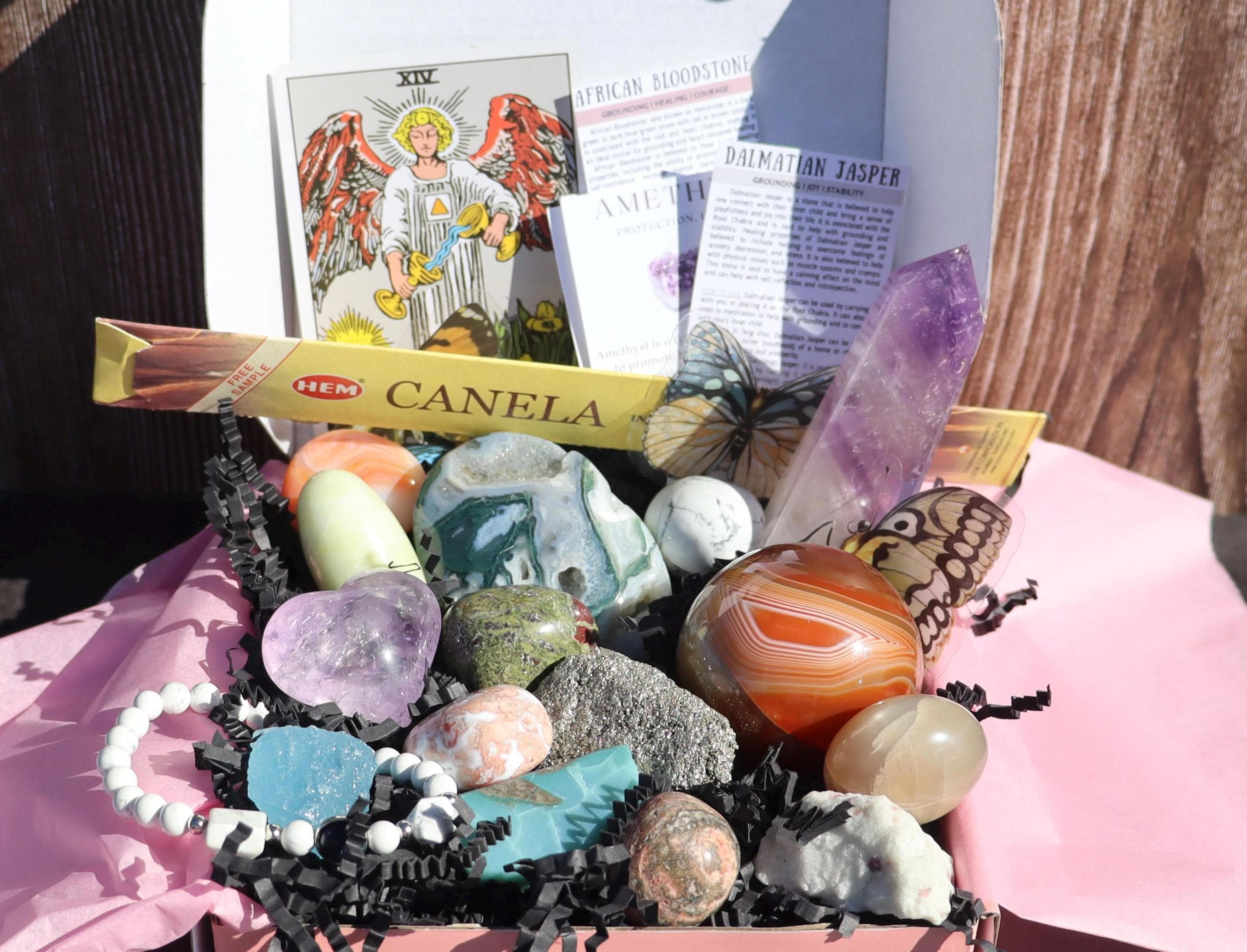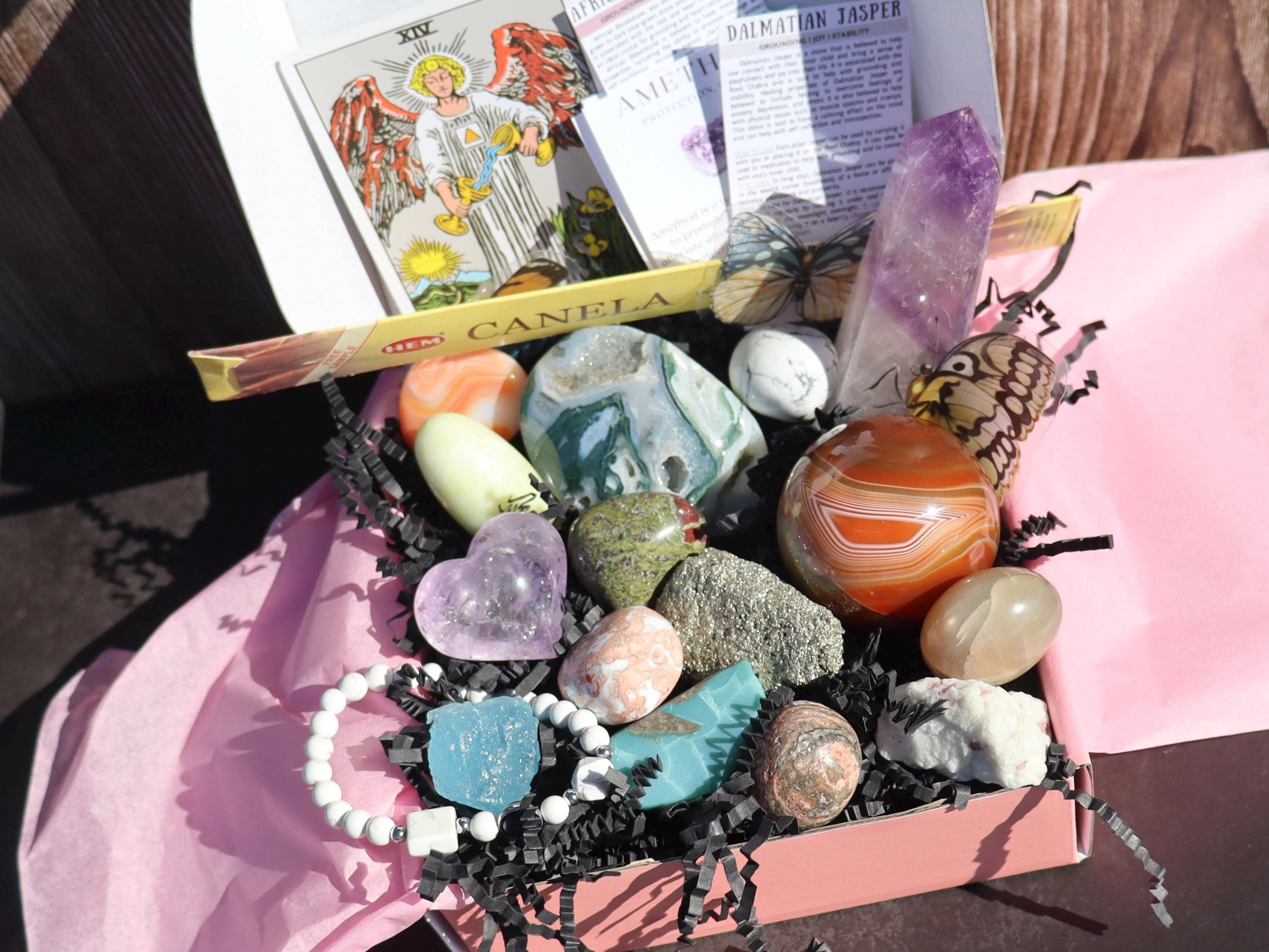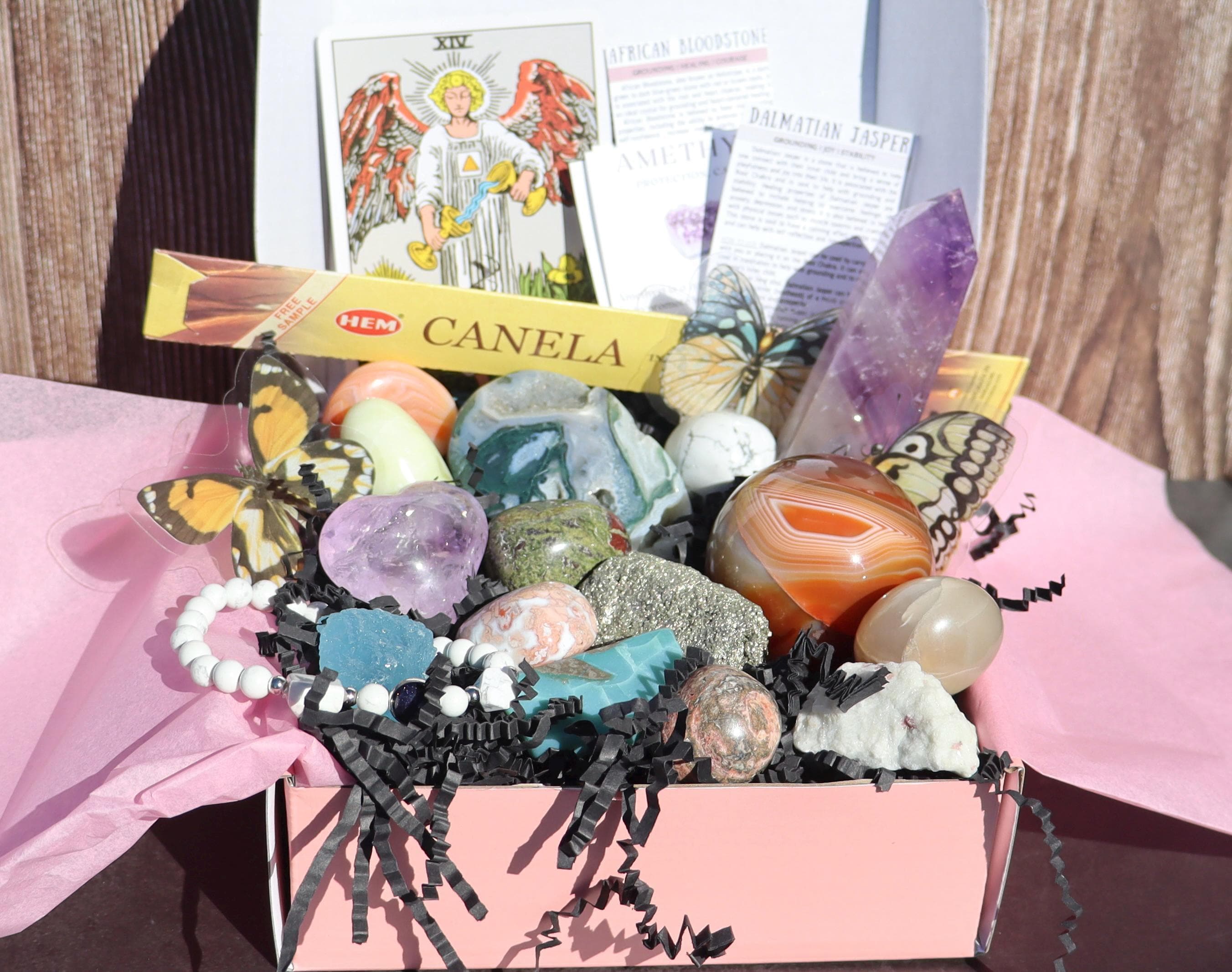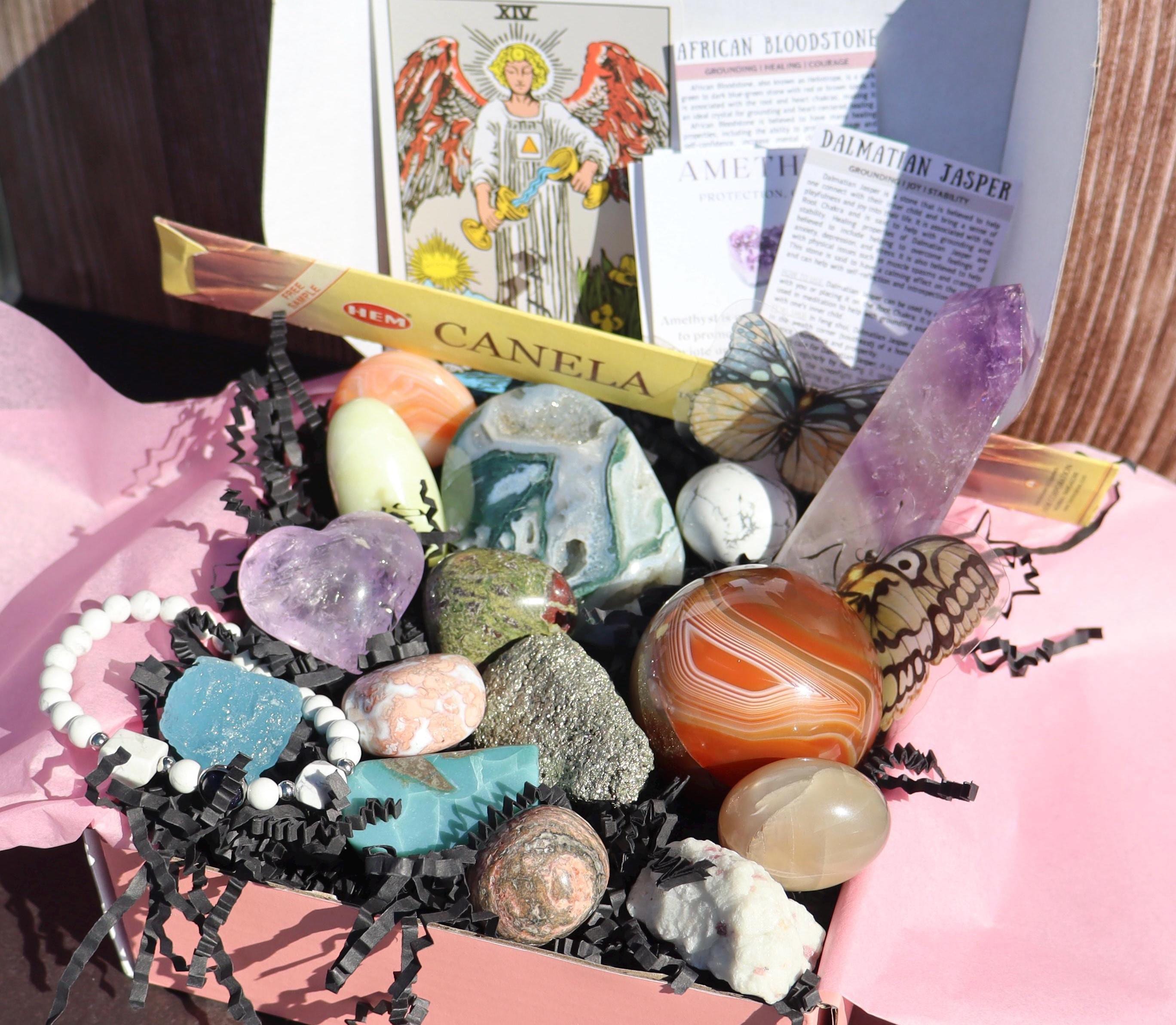 This is a MYSTERY box. Feel free to leave notes of stones, chakra, etc, on what you would like. We will do our best to accommodate certain requests, but nothing is promised. It is a complete mystery!