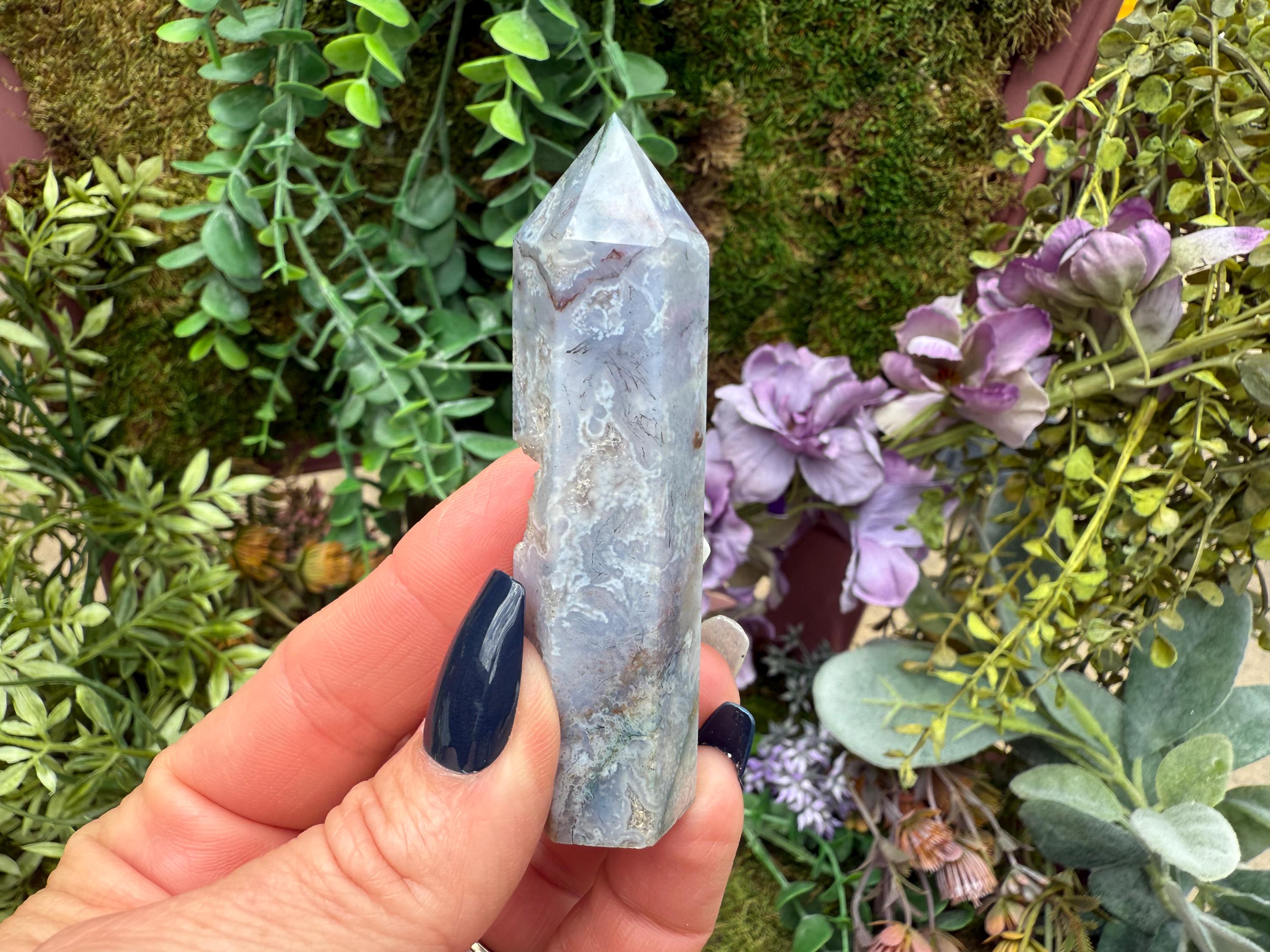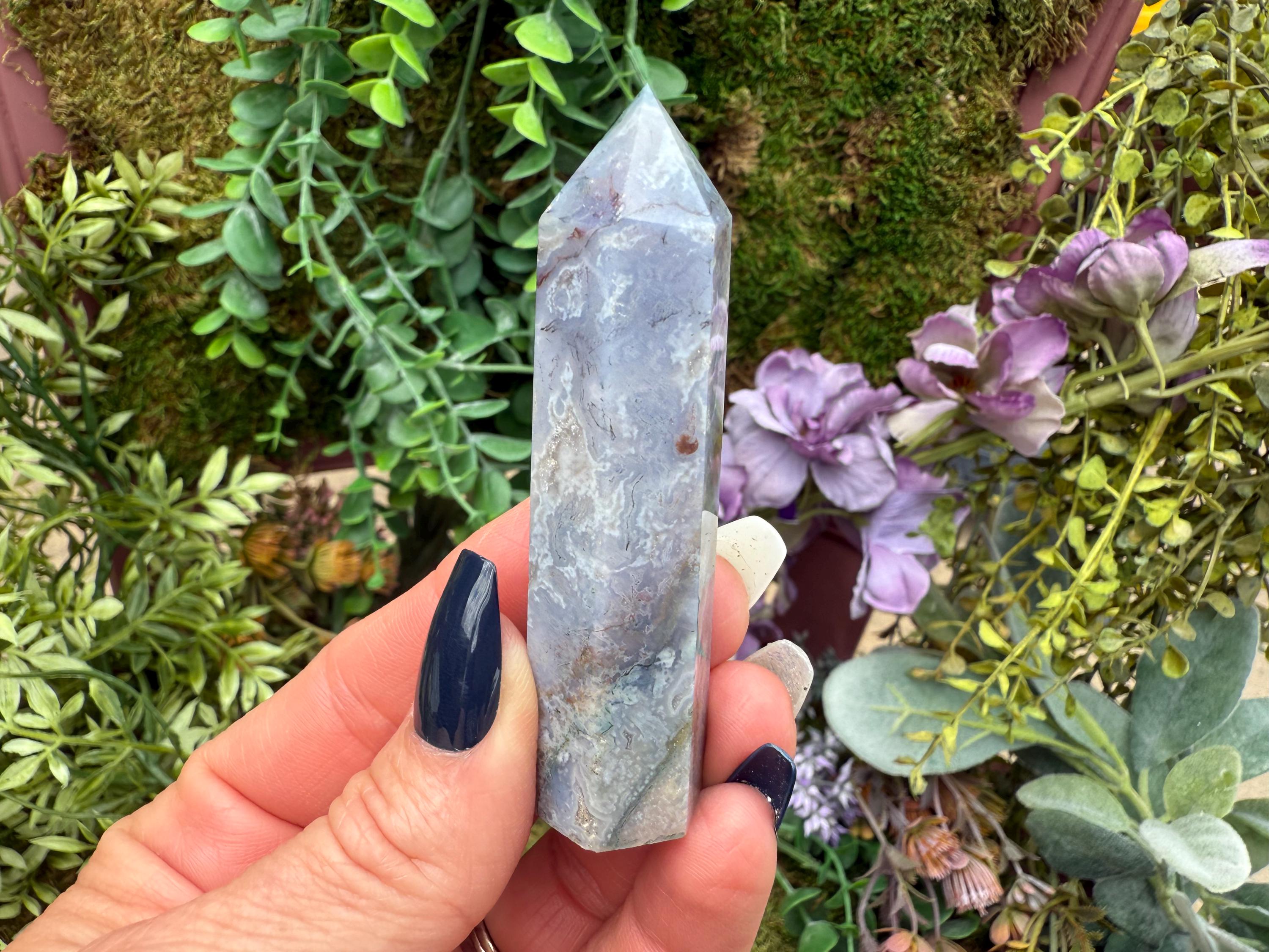 Moss Agate's metaphysical properties include fostering emotional balance, stability, and inner peace by grounding the wearer and connecting them to nature's energies. It is also considered a stone of growth, abundance, and new beginnings, promoting both physical and spiritual renewal. The stone is believed to enhance creativity, strengthen relationships, improve self-esteem, and offer protective energies against negative influences.