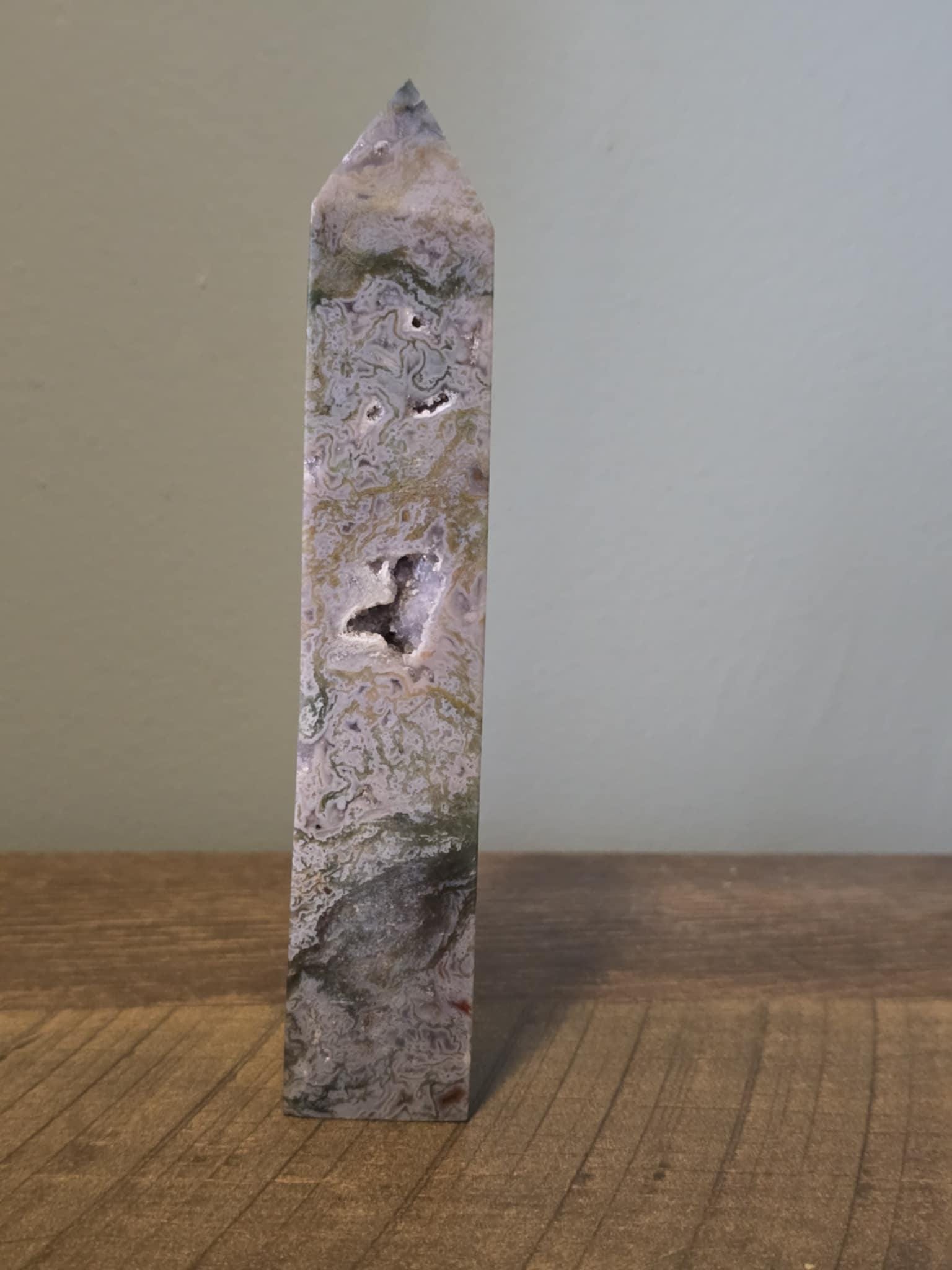 This crystal is absolutely mesmerizing! The intricate swirling patterns and soft earthy tones give it such a unique, almost otherworldly look. I love how it has tiny natural pockets that add depth and character. I can’t stop looking at it, truly a beautiful addition to my collection!