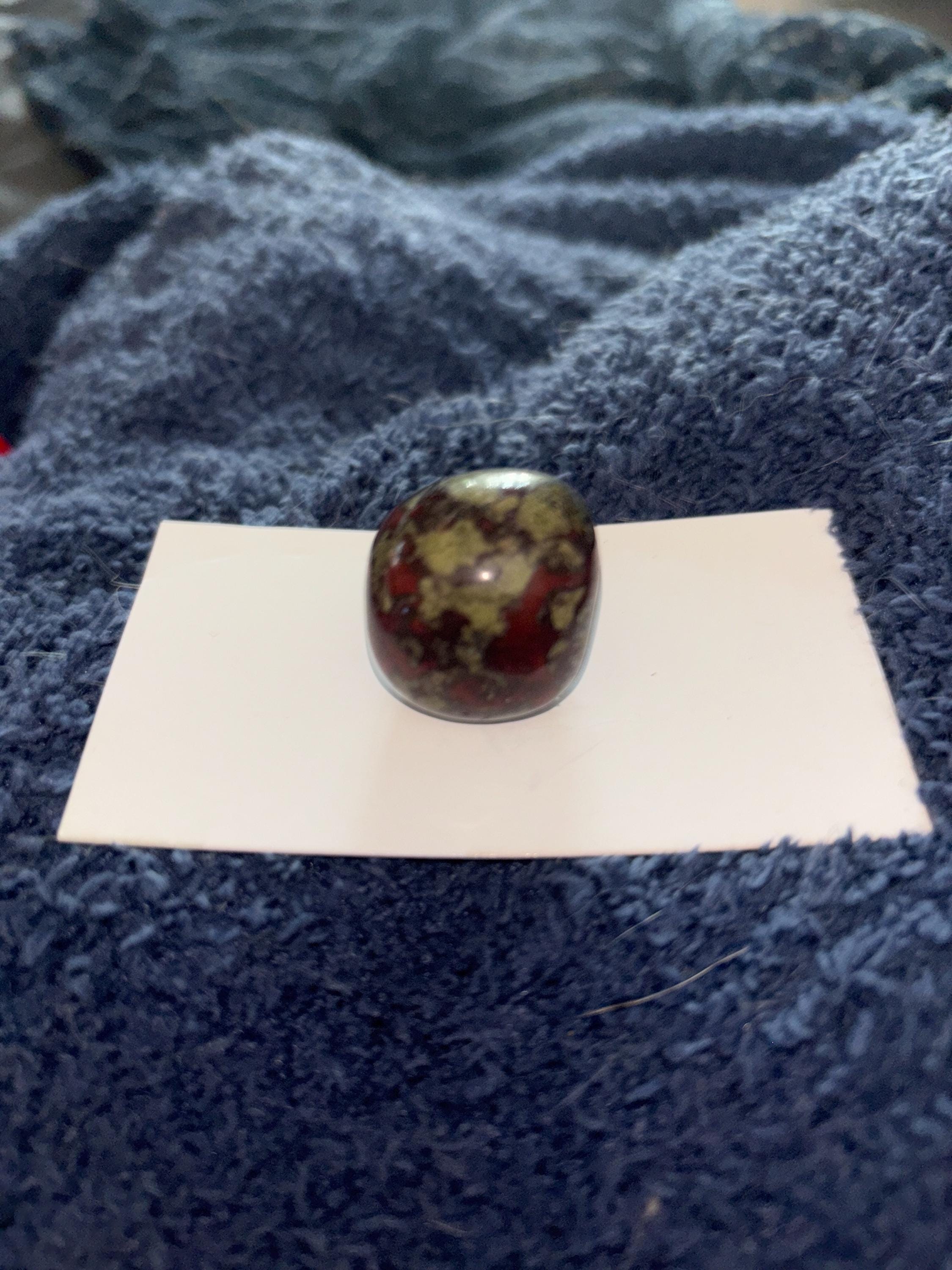 This listing is for ONE (1) Dragons Blood Jasper Tumble. Please select weight group from the drop down menu. One tumble will be intuitively chosen for you from that weight group.