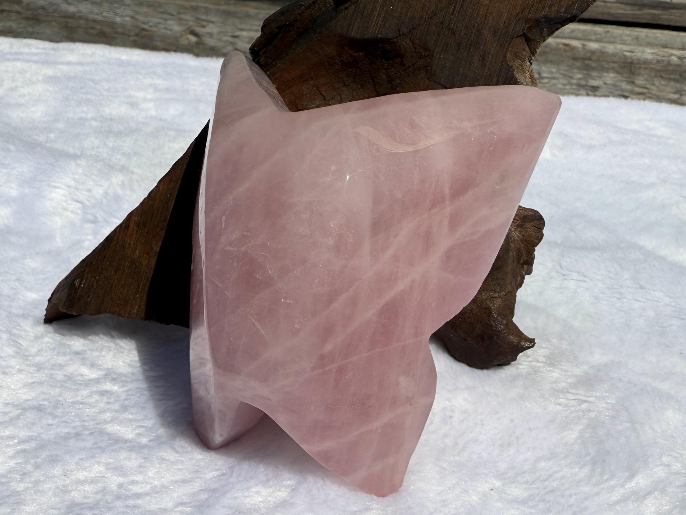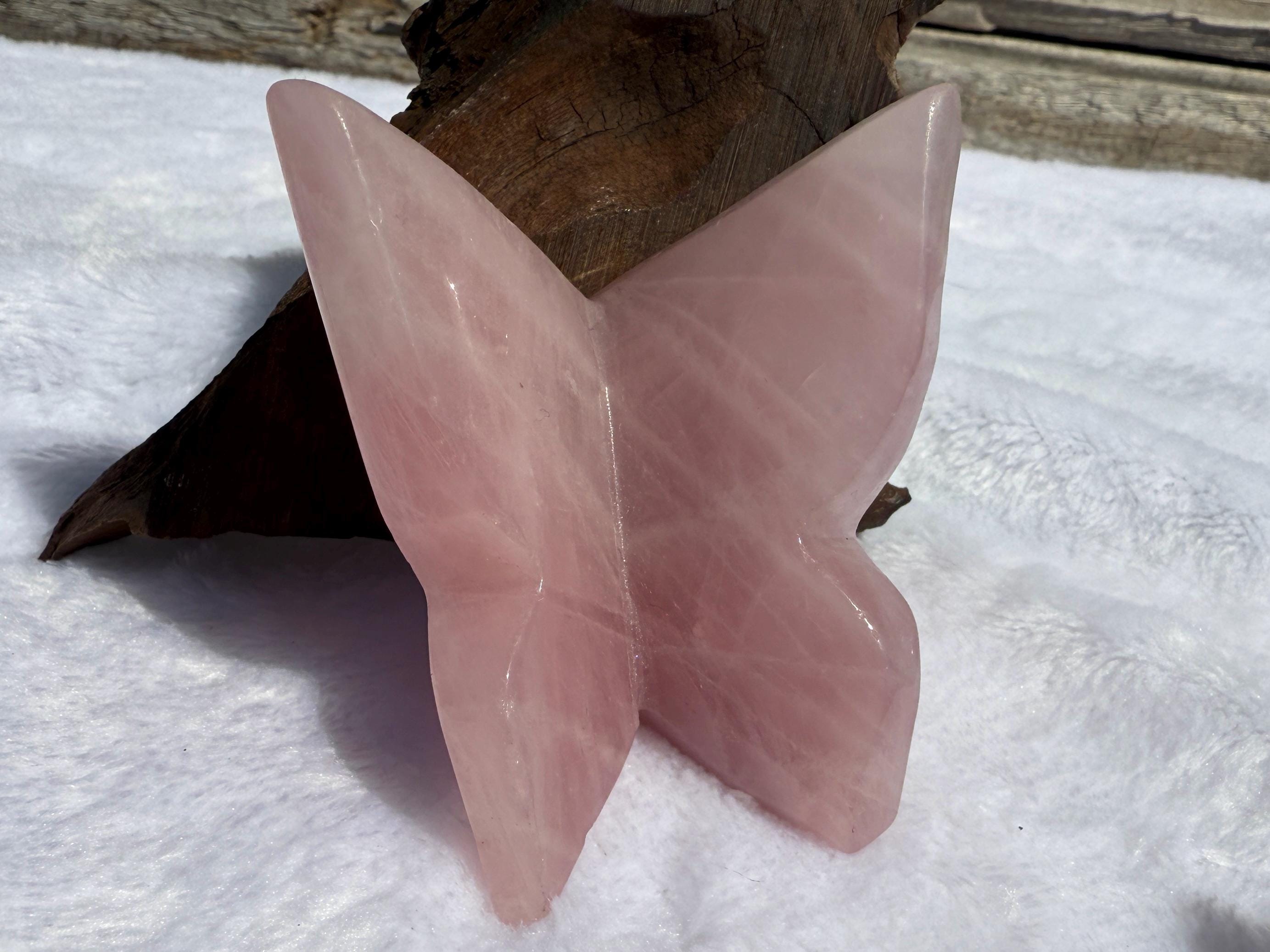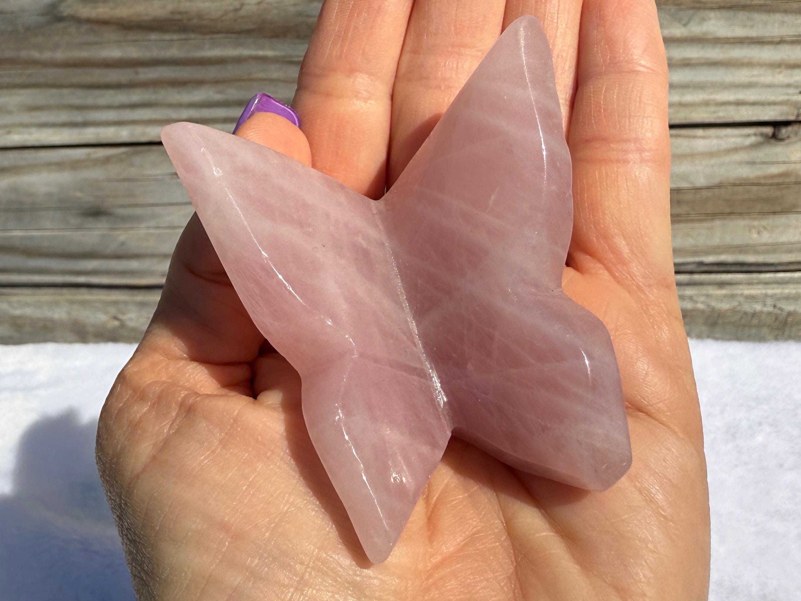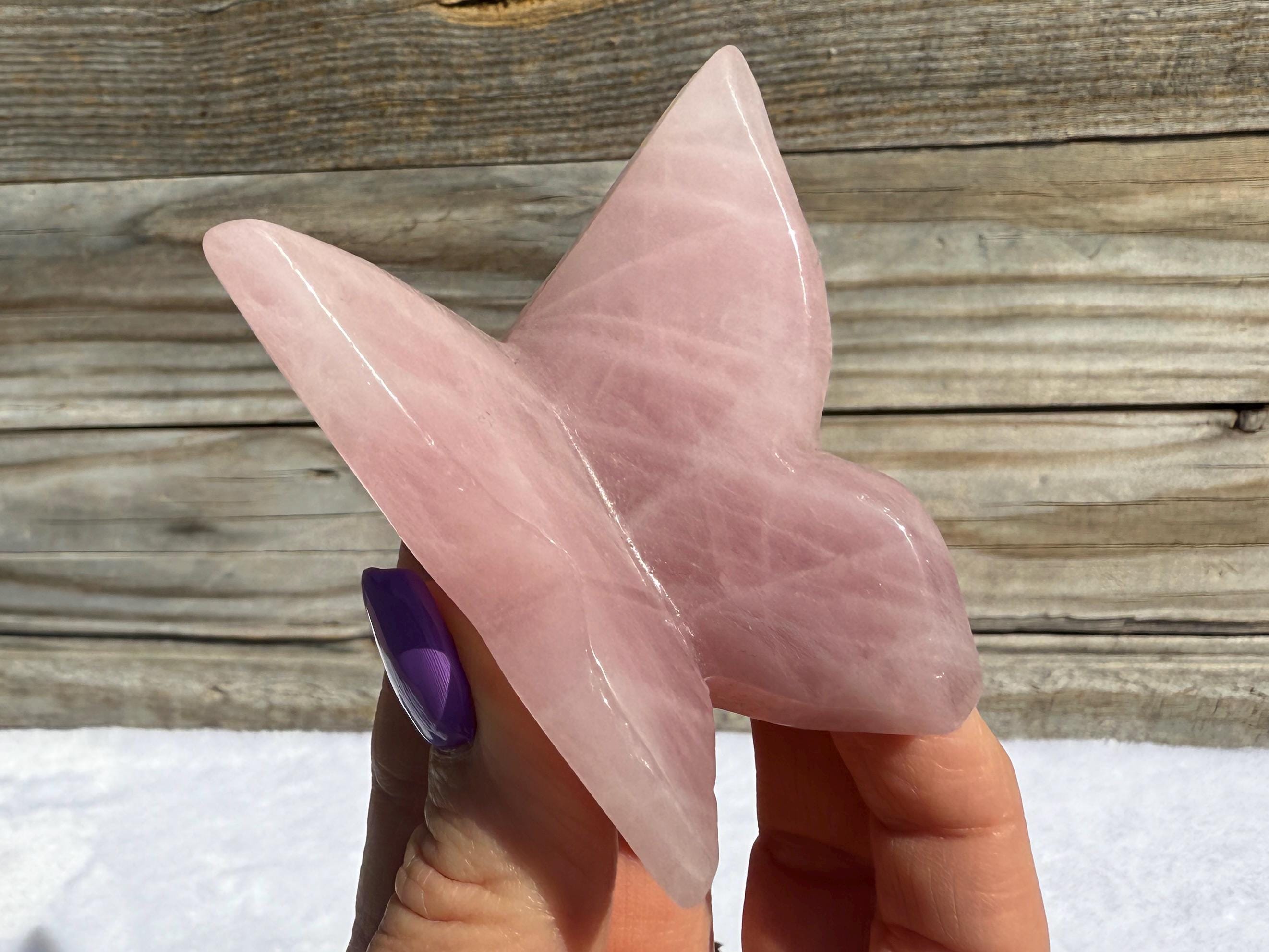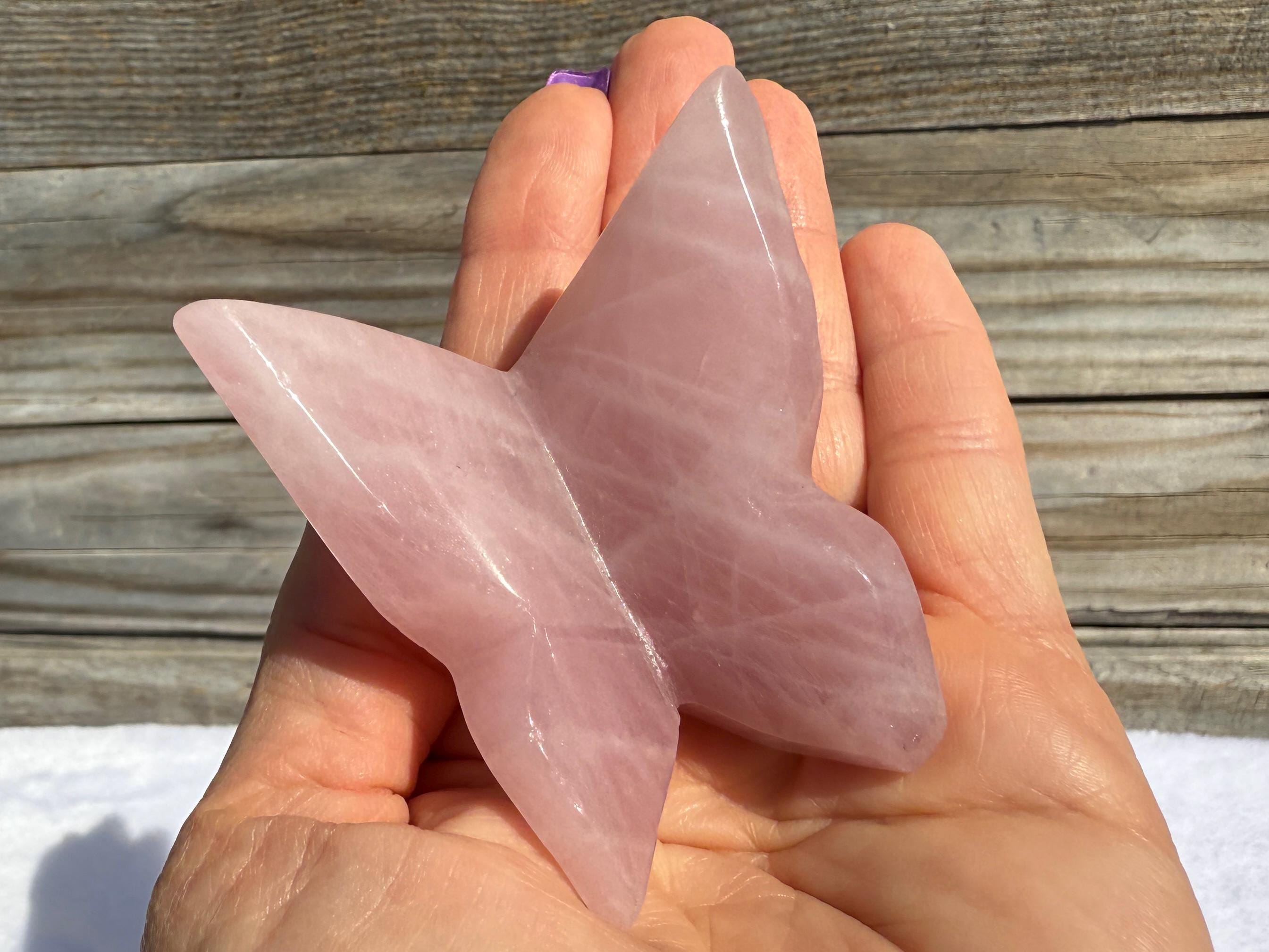 This hand-carved Rose Quartz Butterfly is a symbol of love, transformation, and beauty. Crafted from natural rose quartz with its soft pink tones, this carving makes a meaningful décor piece, meditation companion, or heartfelt gift