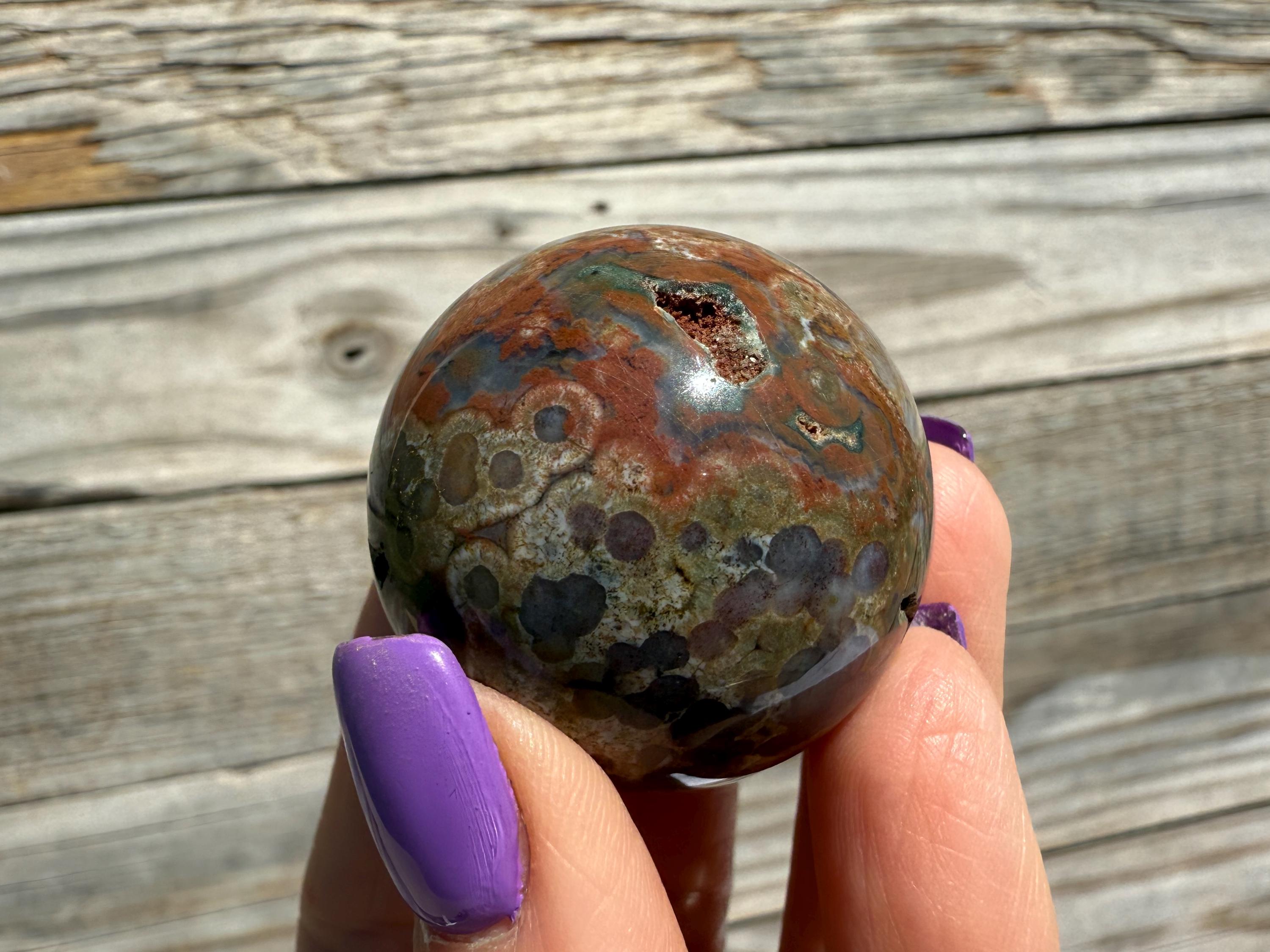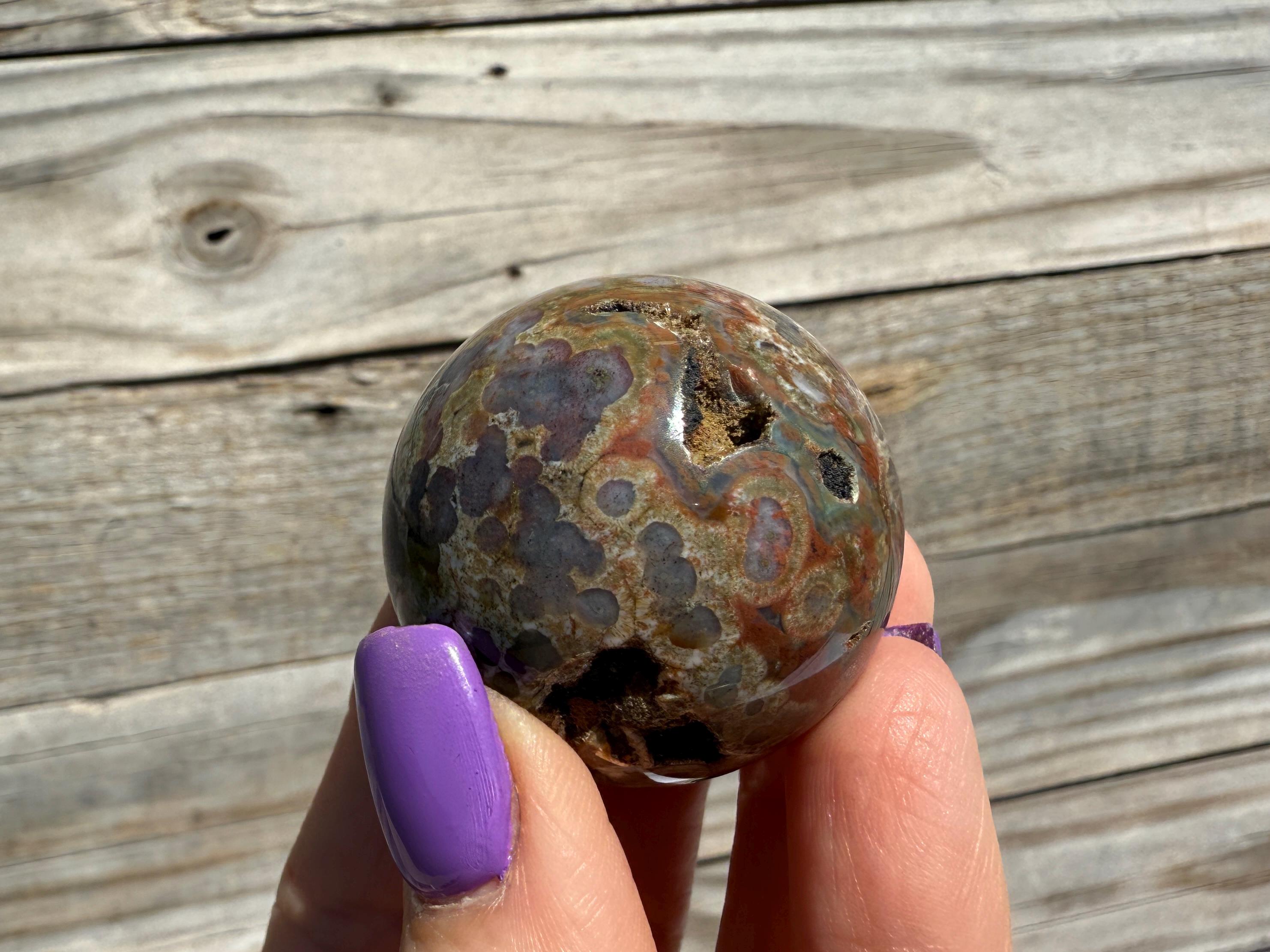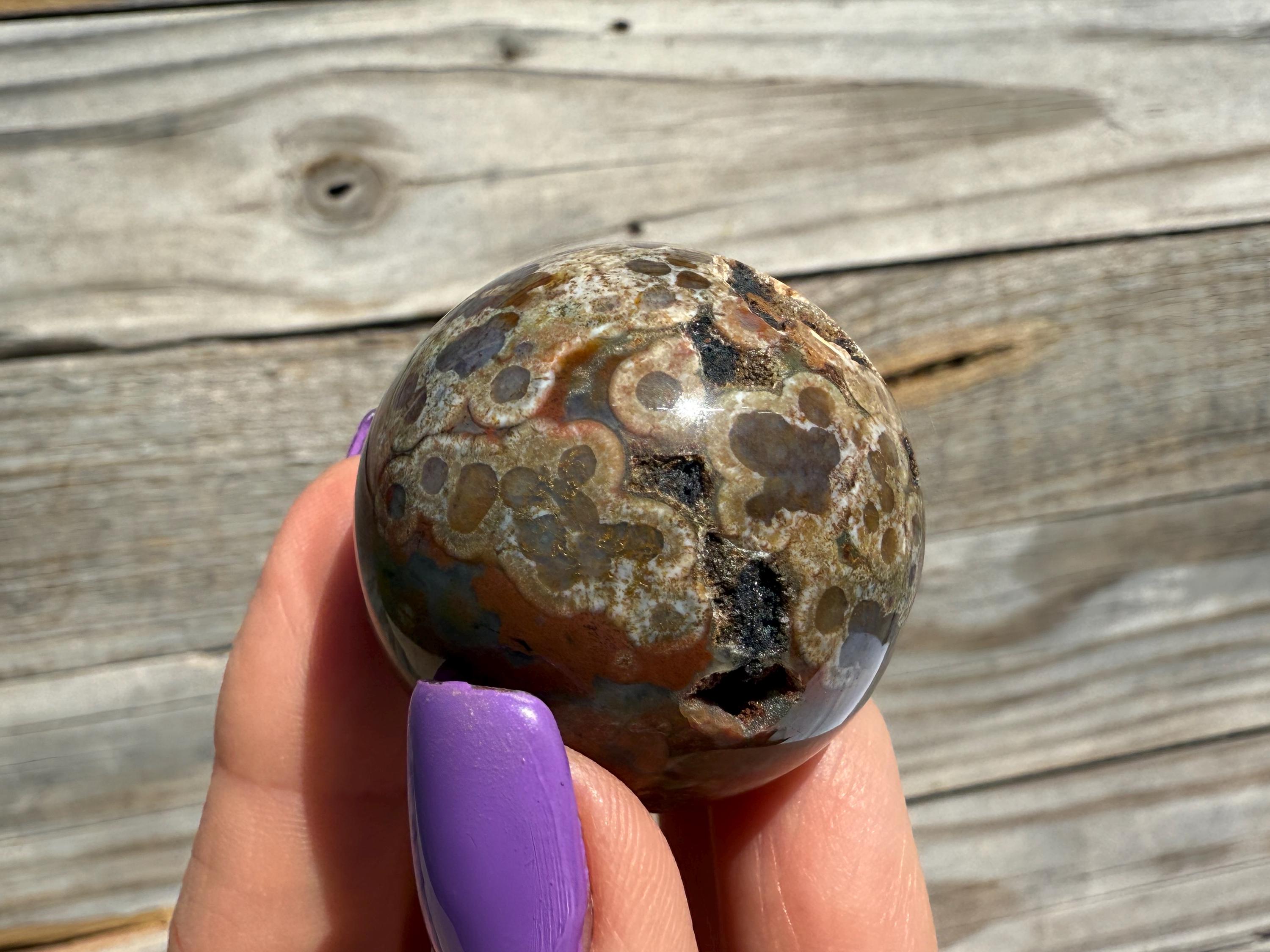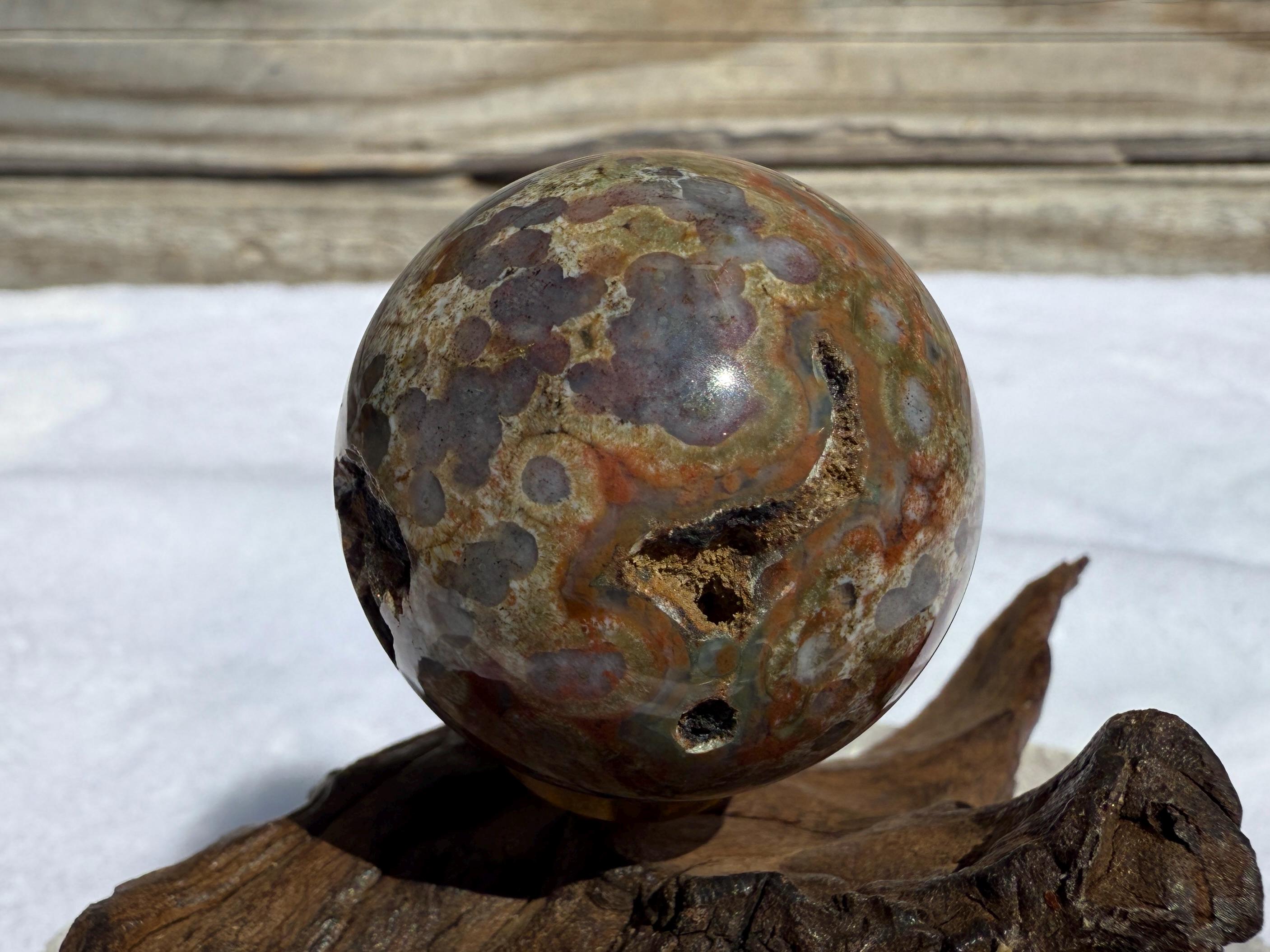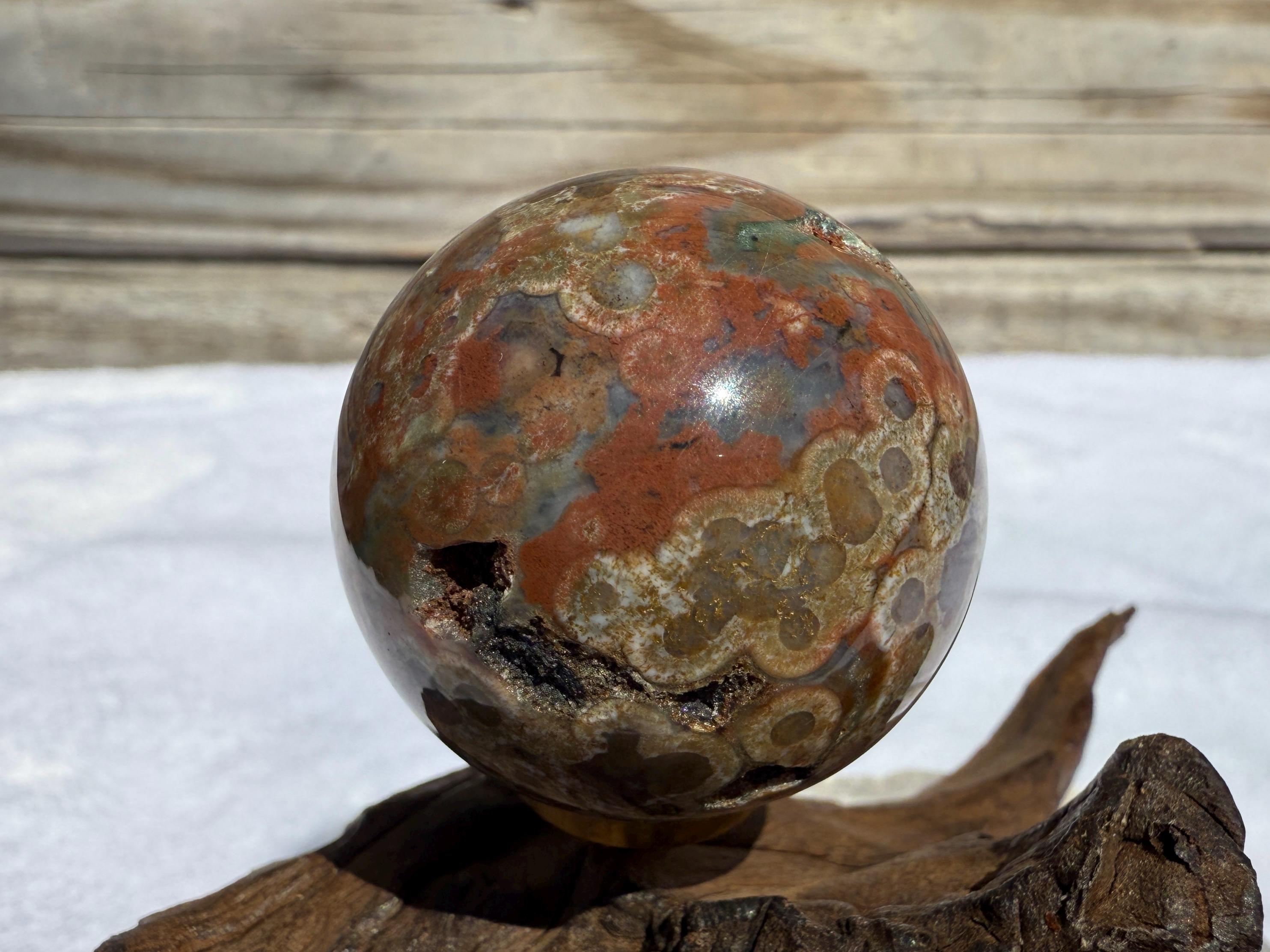 Add this radiant Ocean Jasper Sphere to your collection and enjoy its vibrant patterns and uplifting energy.