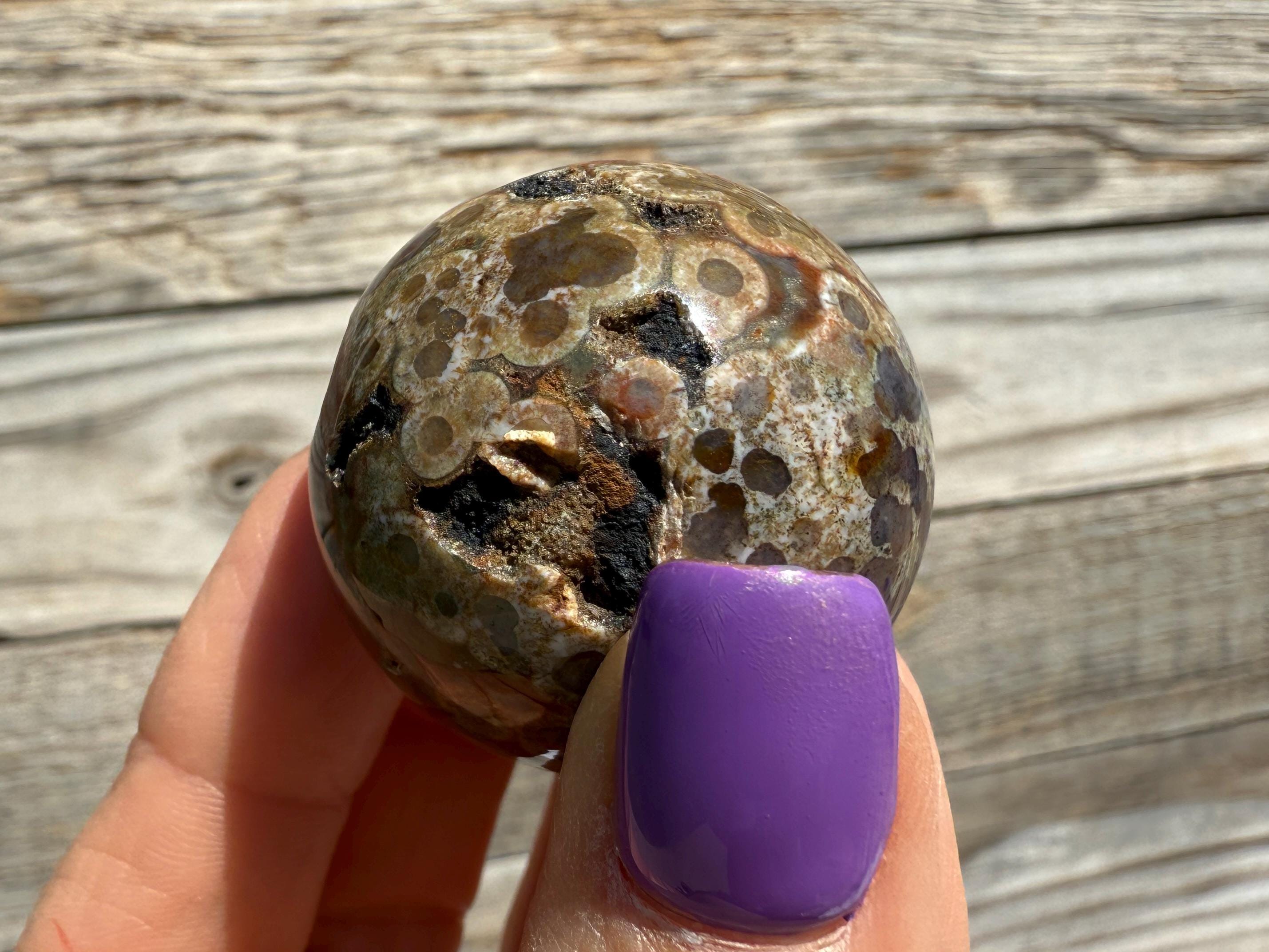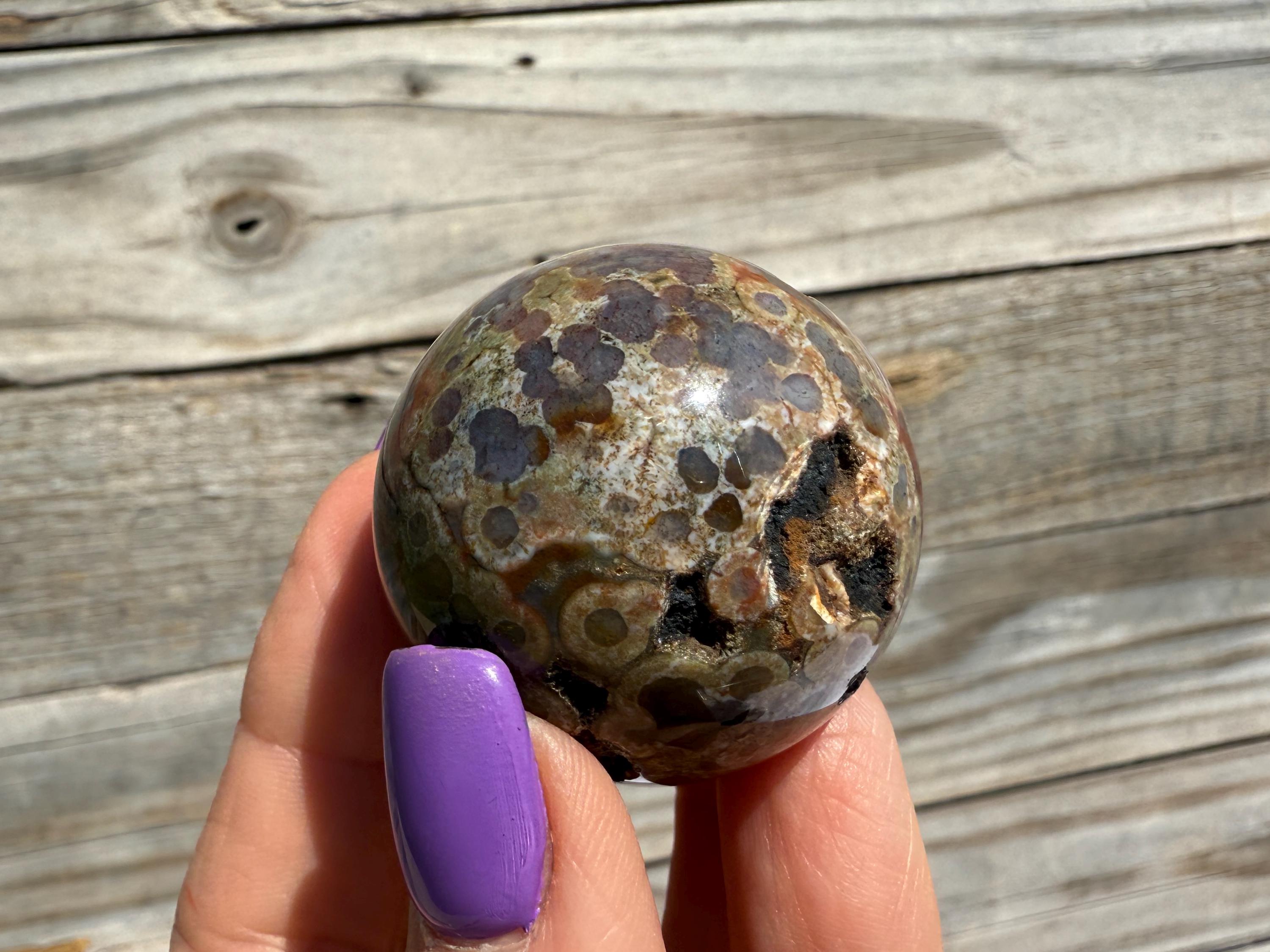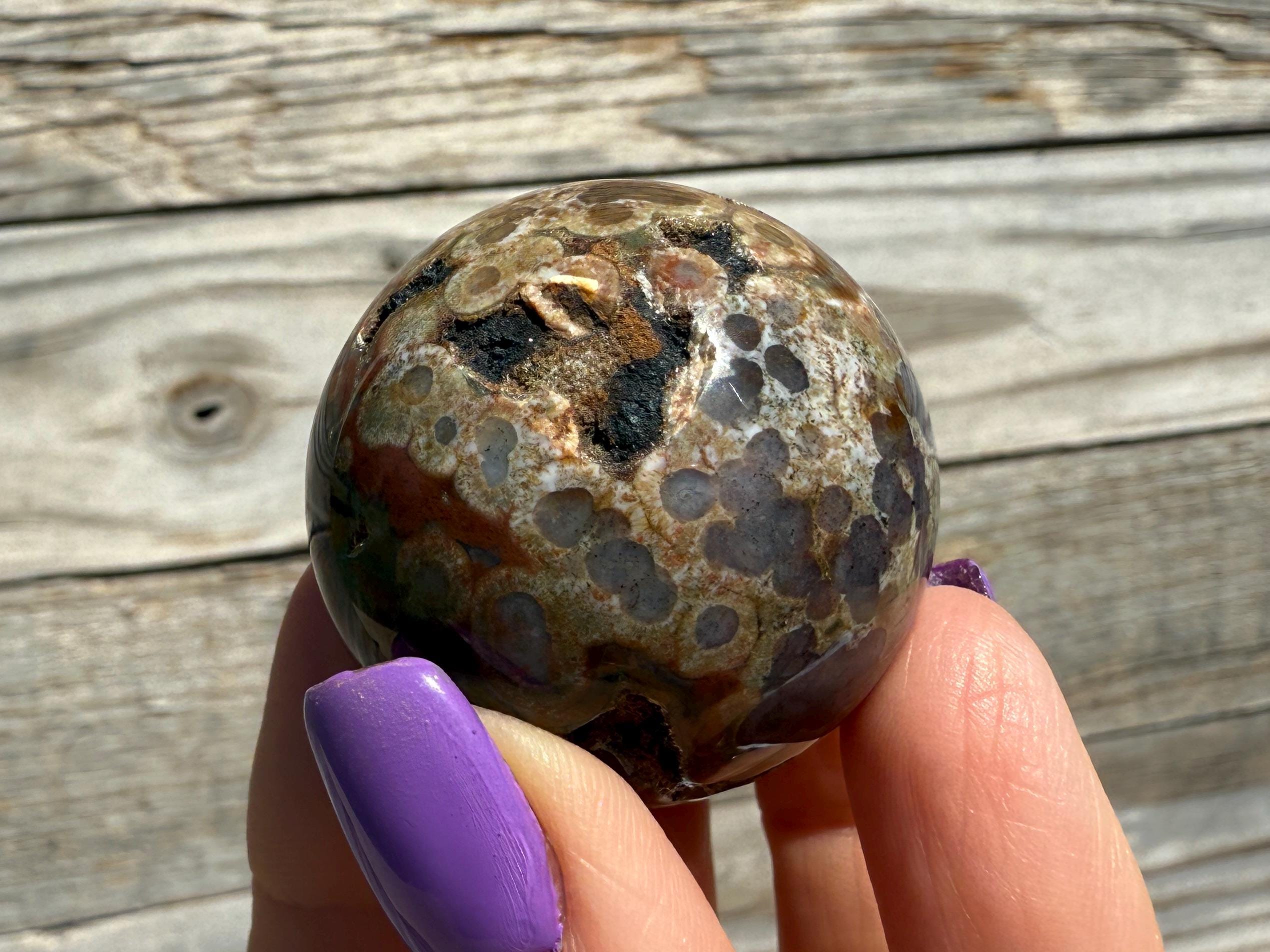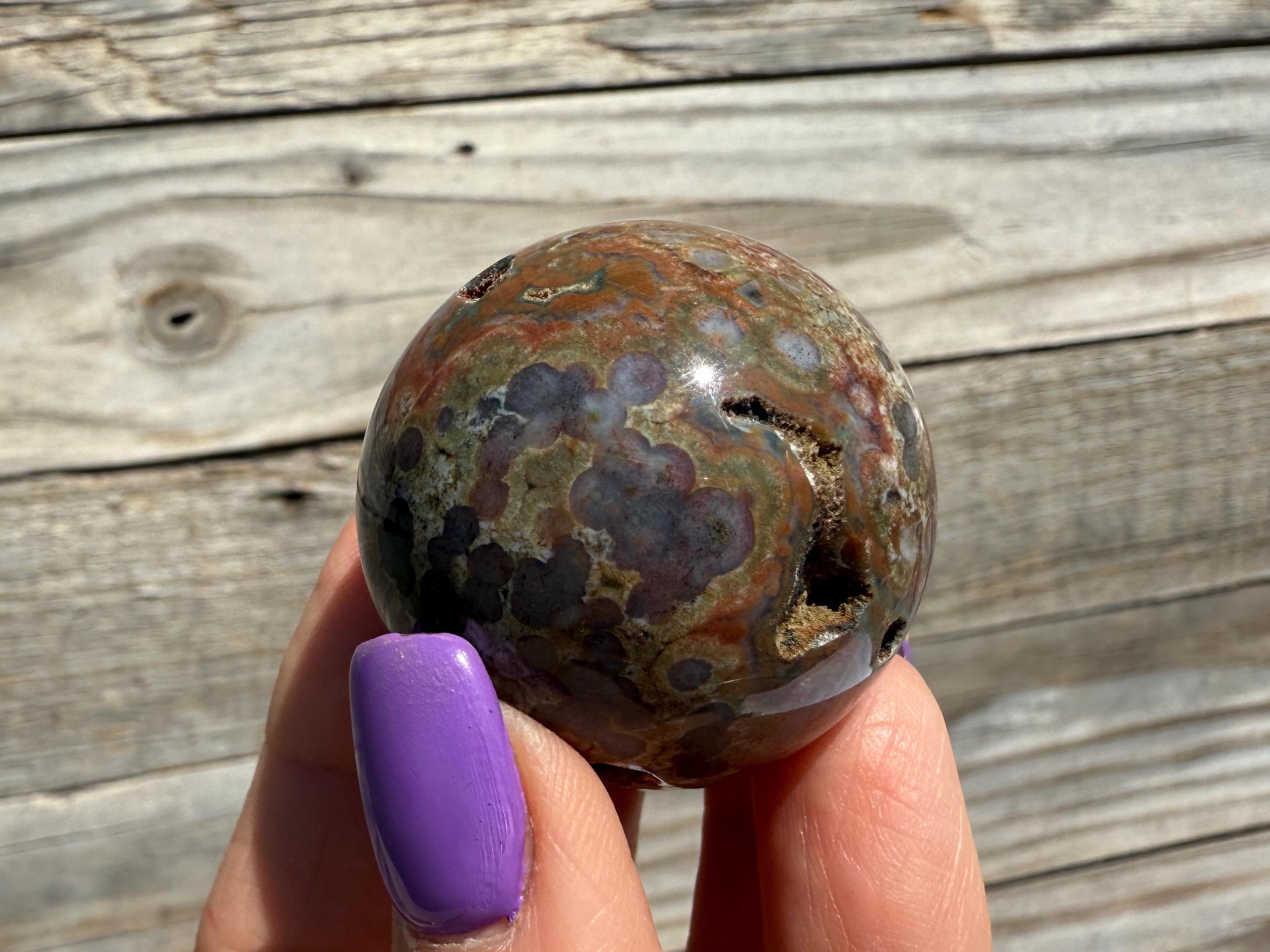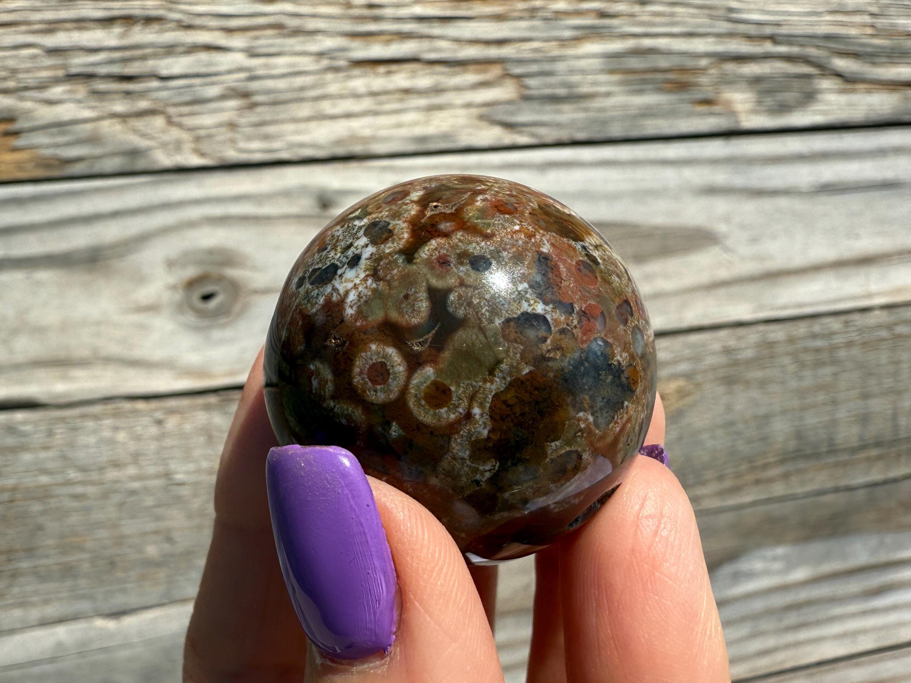 Add this radiant Ocean Jasper Sphere to your collection and enjoy its vibrant patterns and uplifting energy.