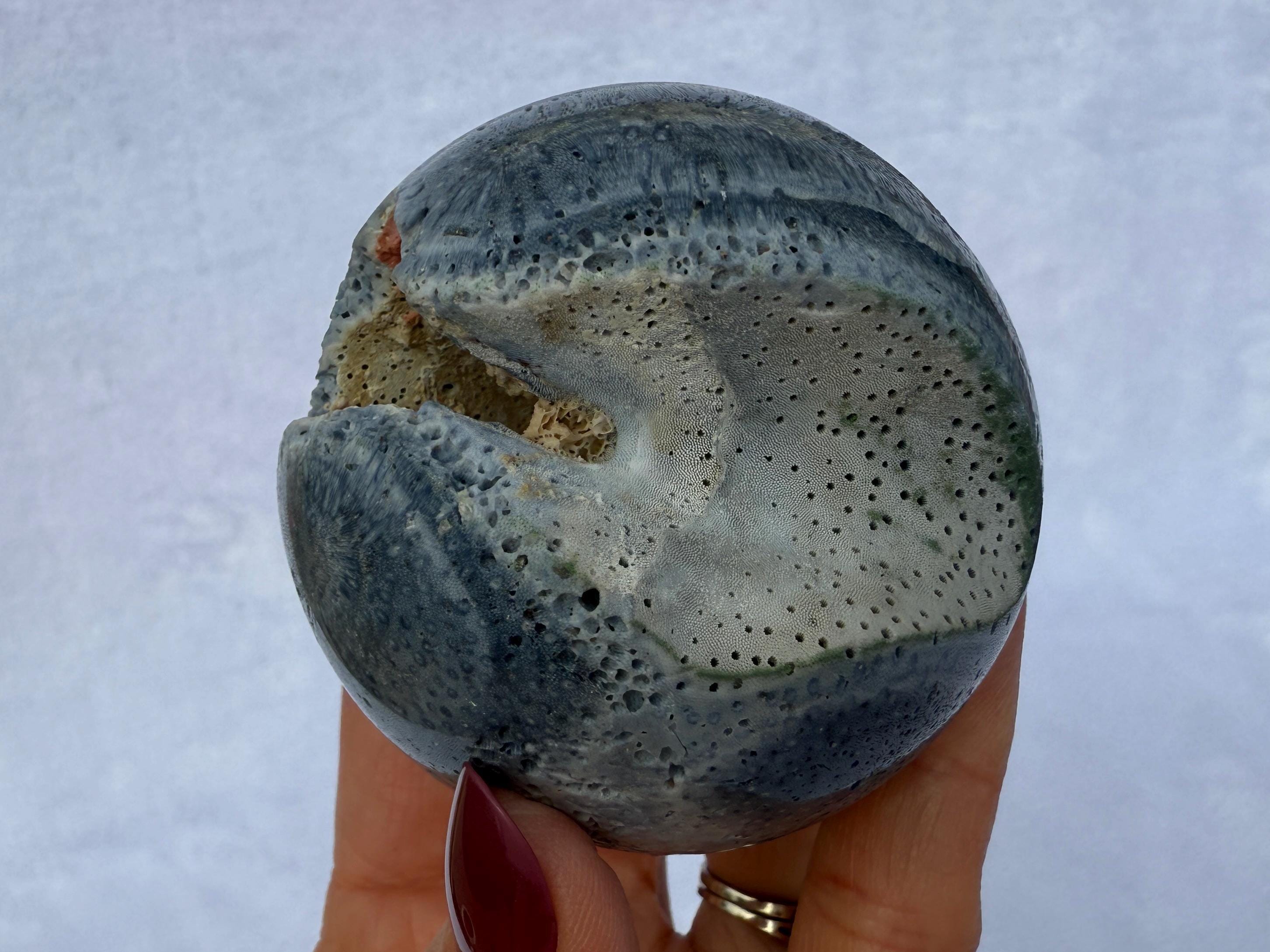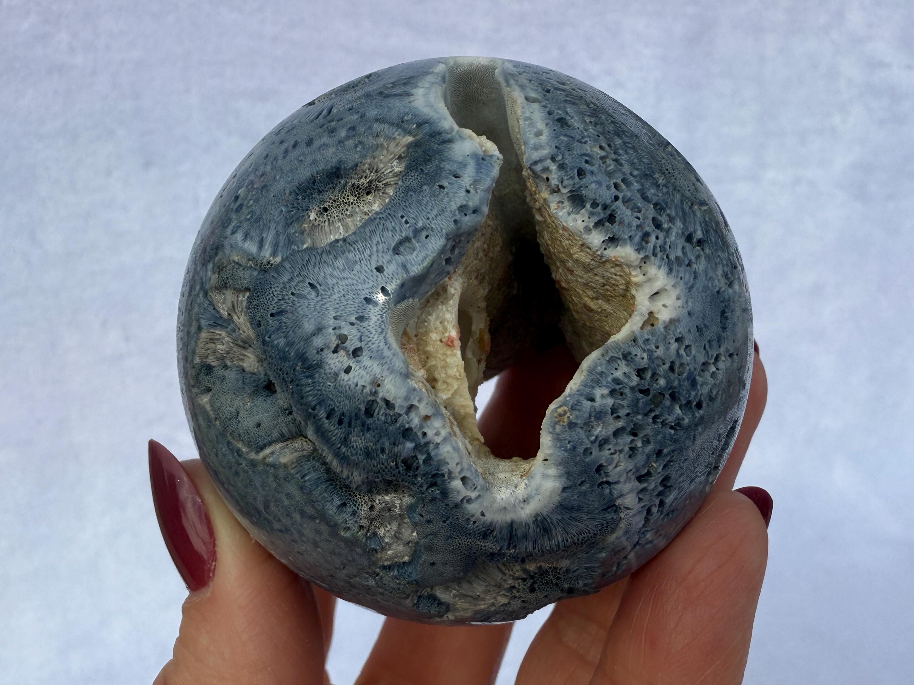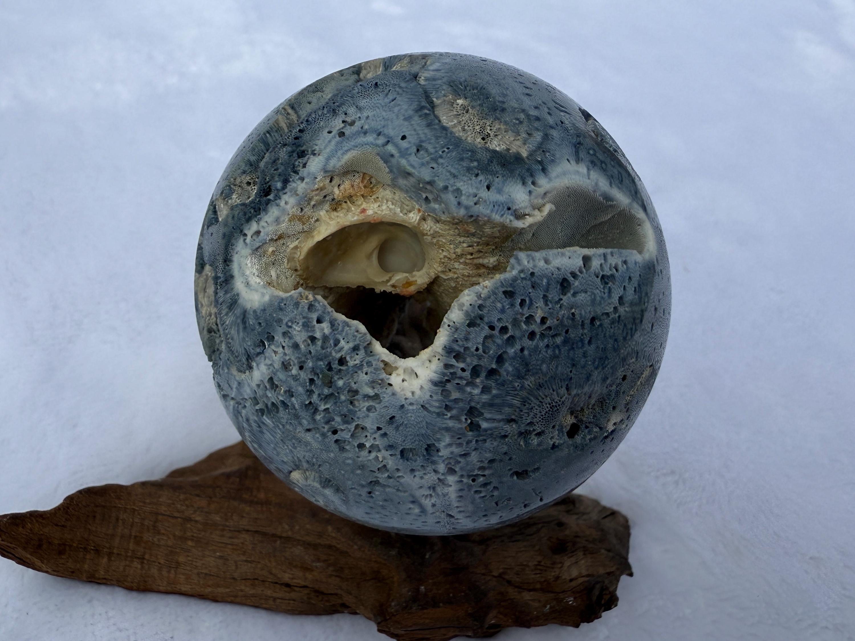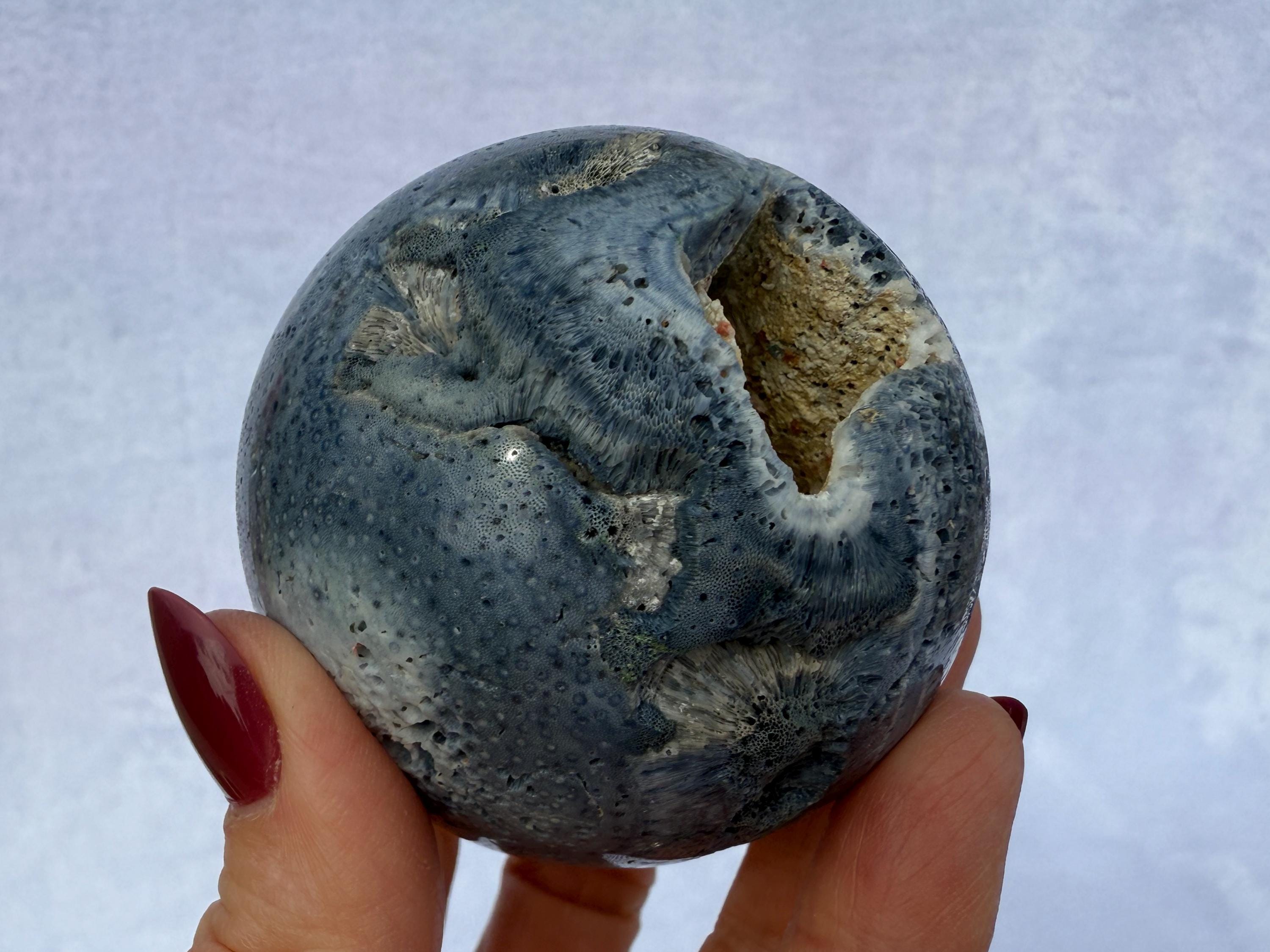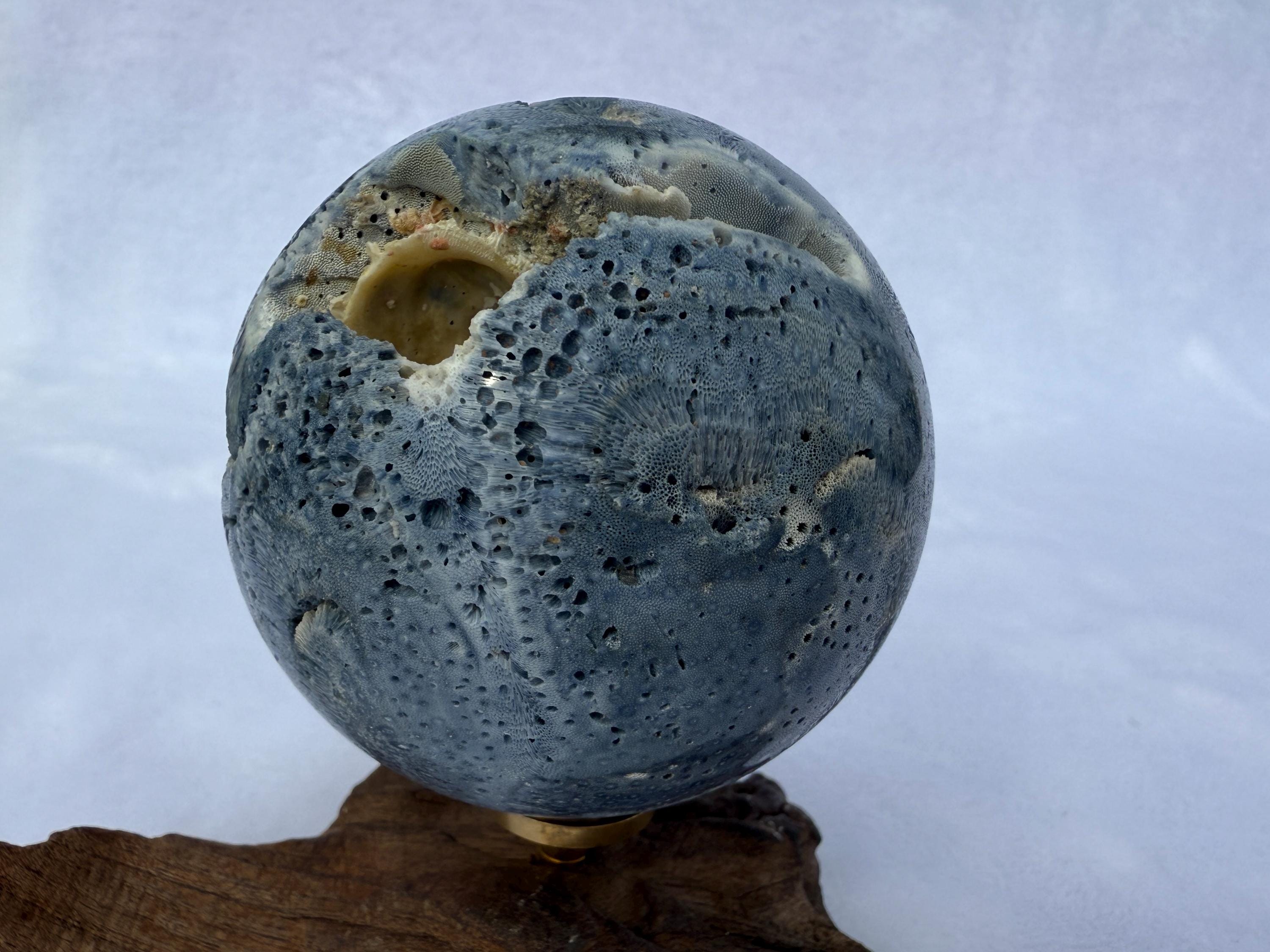 ✨ Features • Genuine Blue Fossil Coral Sphere • Beautiful ocean-like patterns and colors • Smooth polished finish with natural markings • Perfect for display, meditation, or gifting