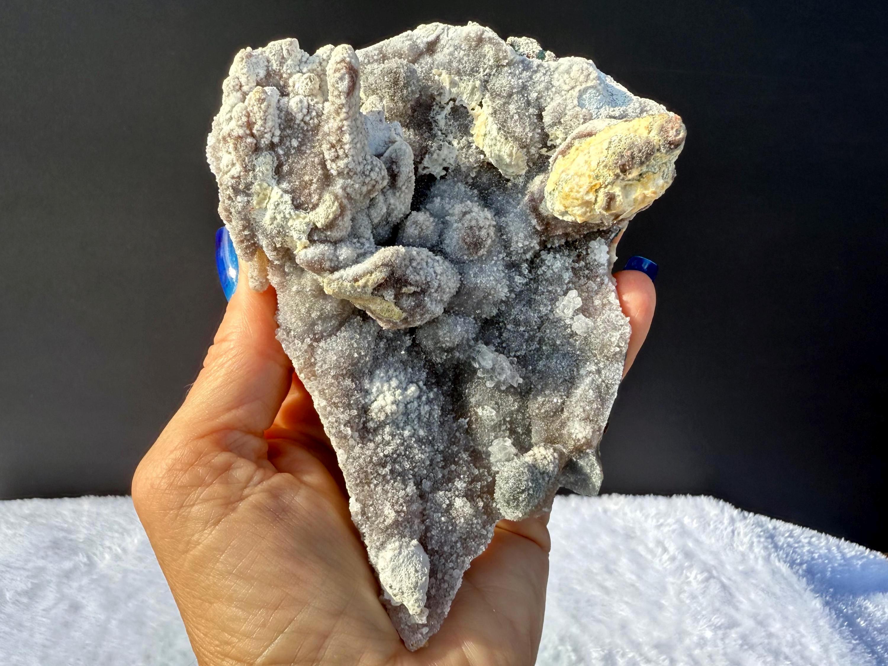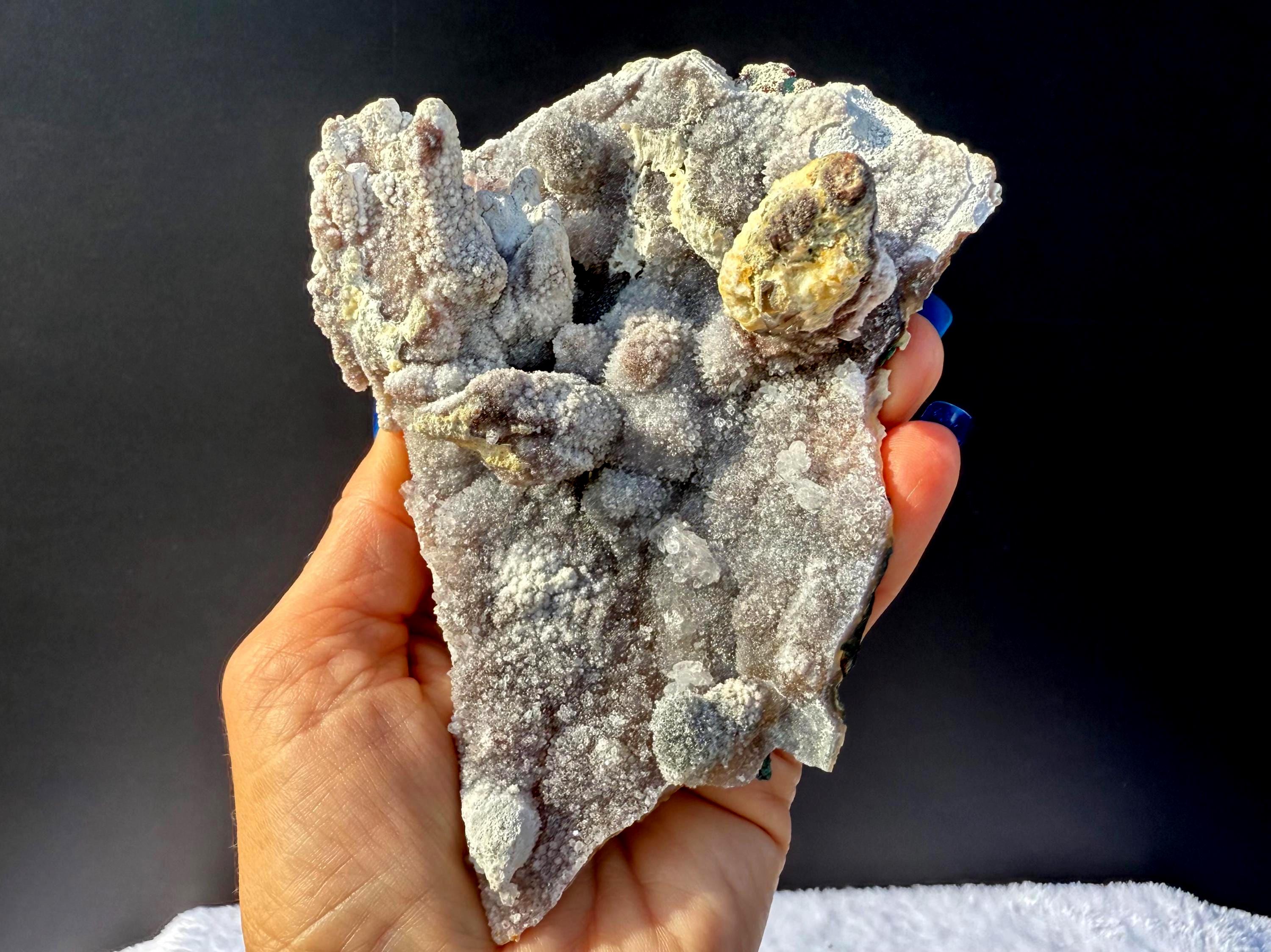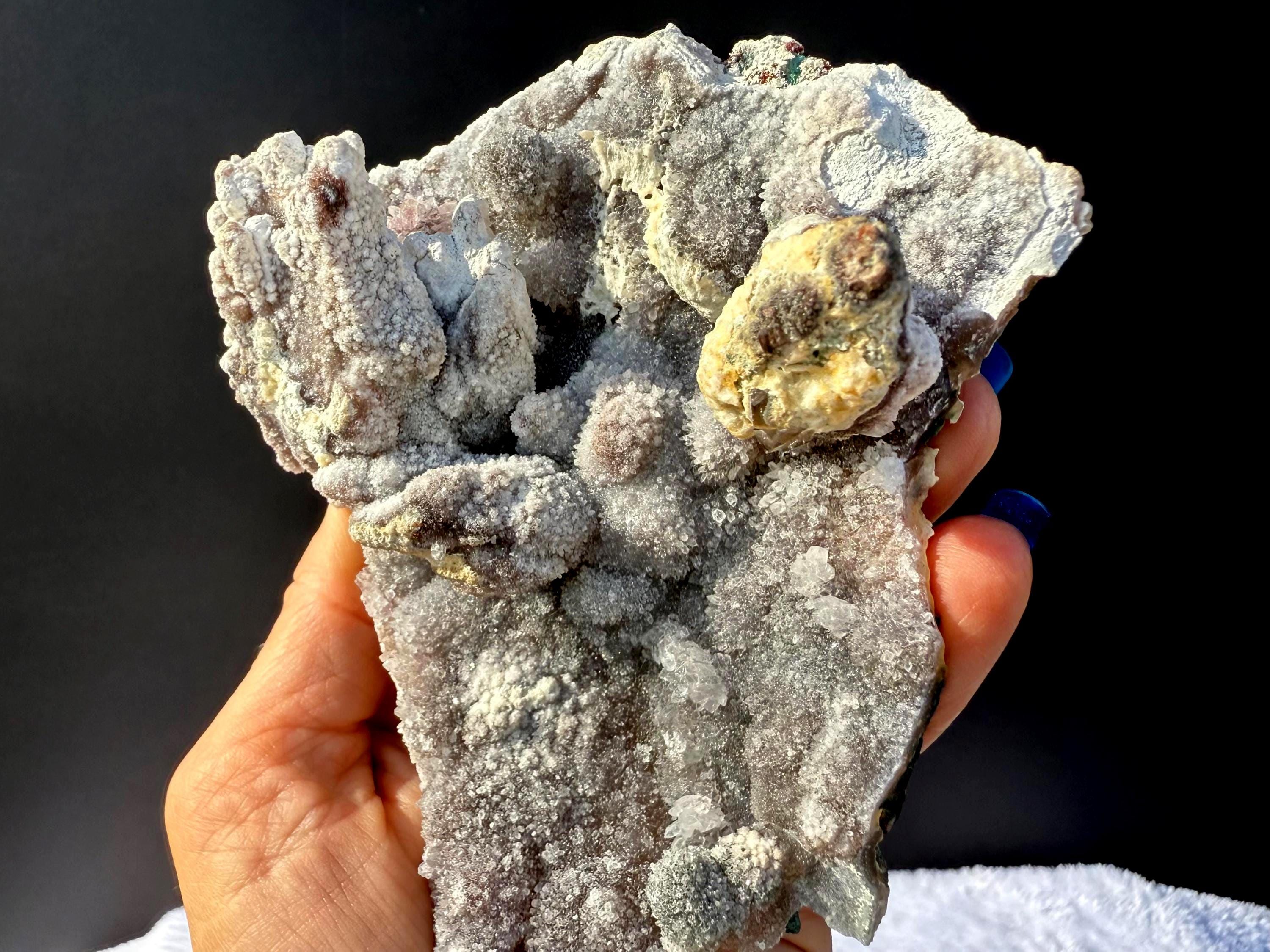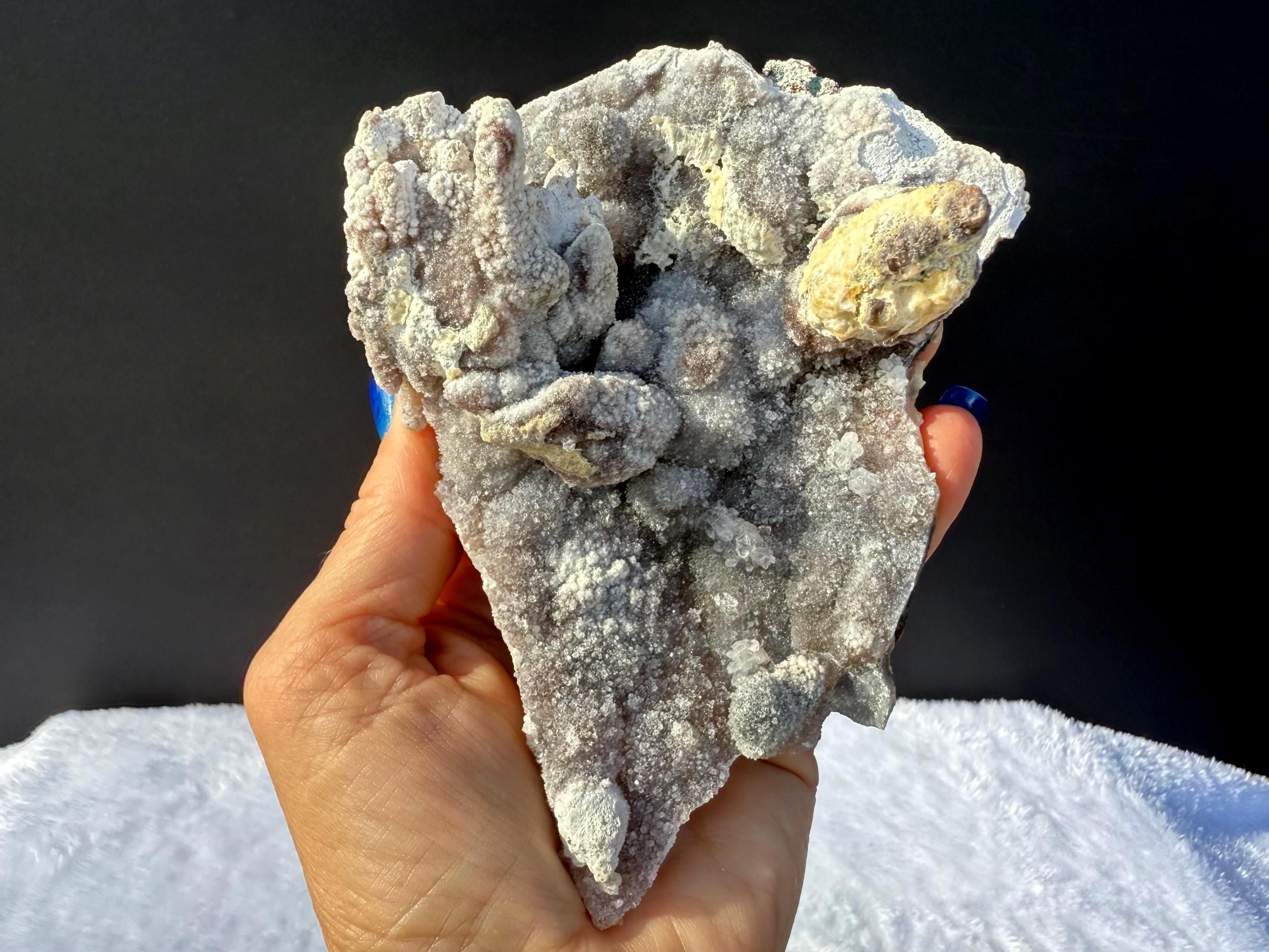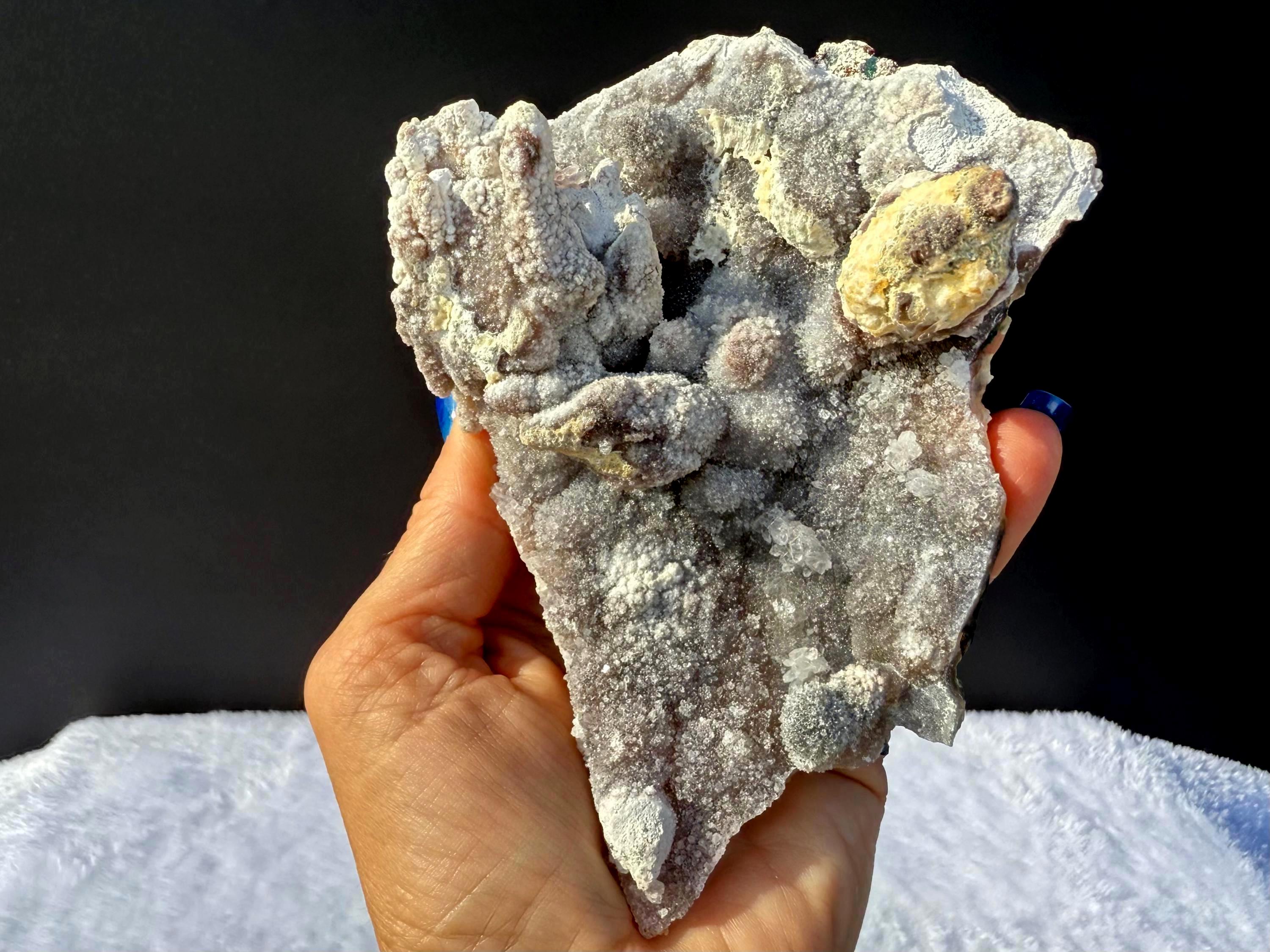 Bring natural beauty and texture to your collection with this stunning Zeolite Specimen. This piece features delicate, sparkling crystal formations that range from soft white to purple. The unique structure and gentle shimmer make zeolite a favorite among mineral enthusiasts and collectors alike. Perfect for display, photography, or as a distinctive natural accent in any space.