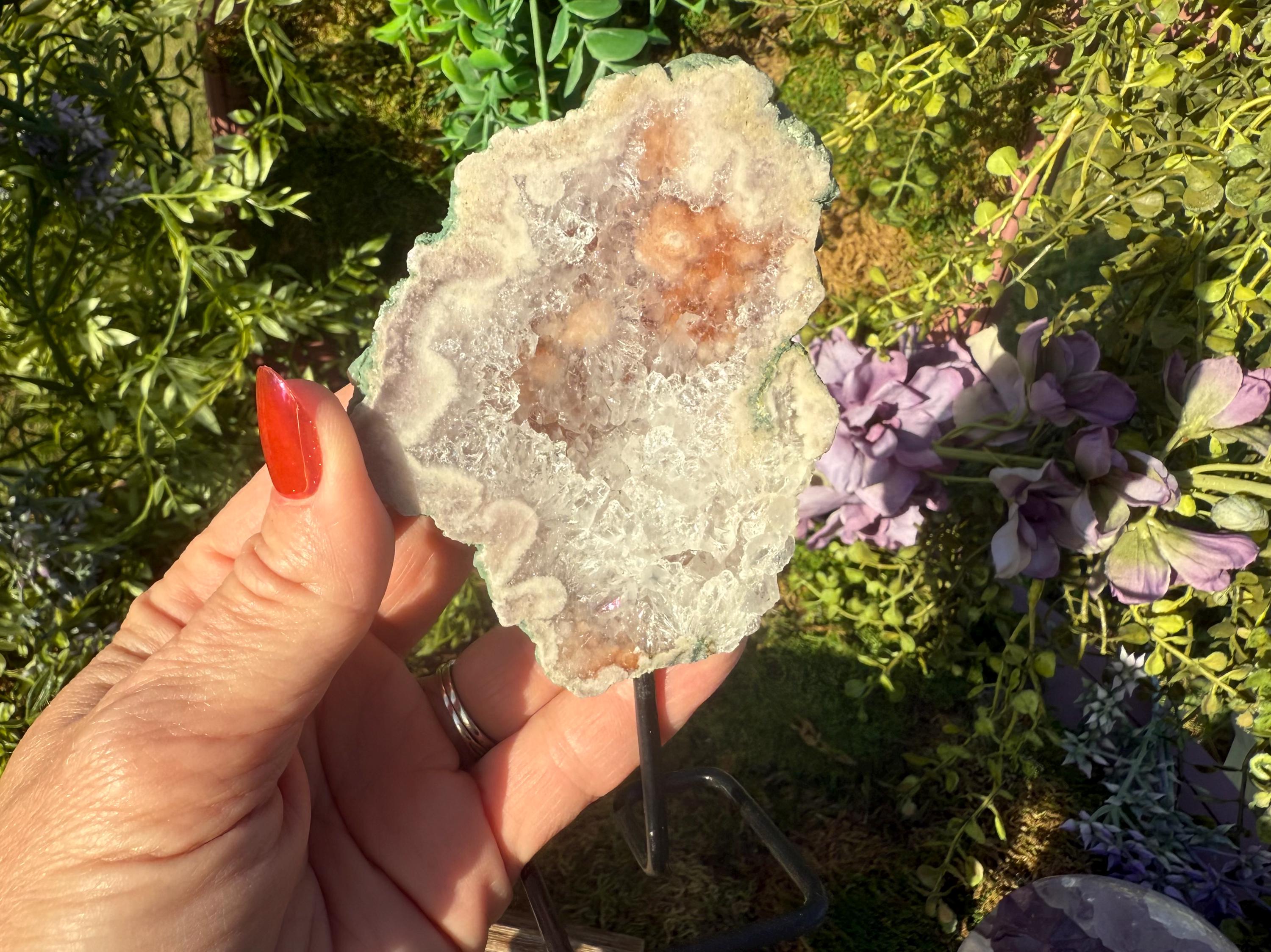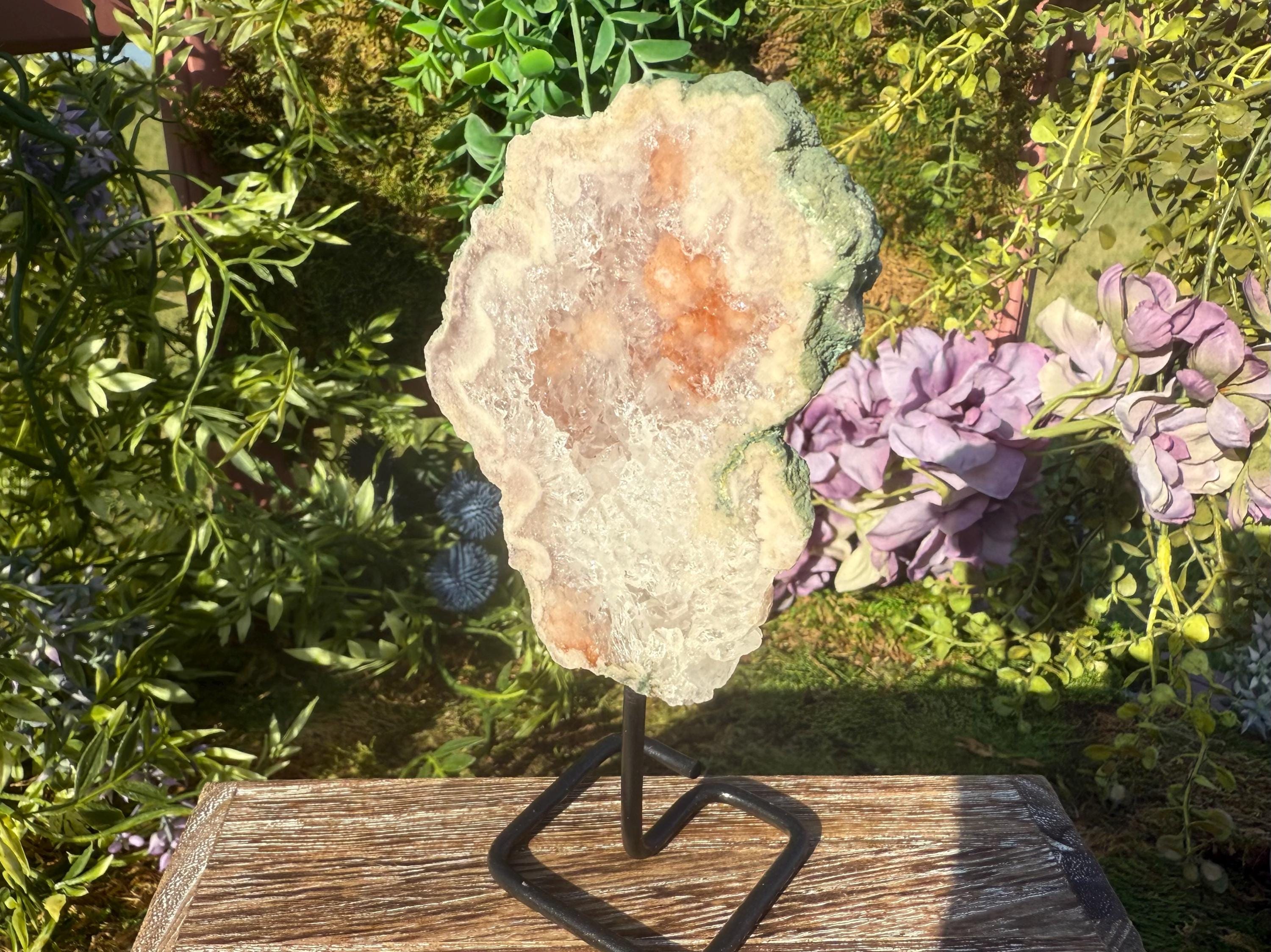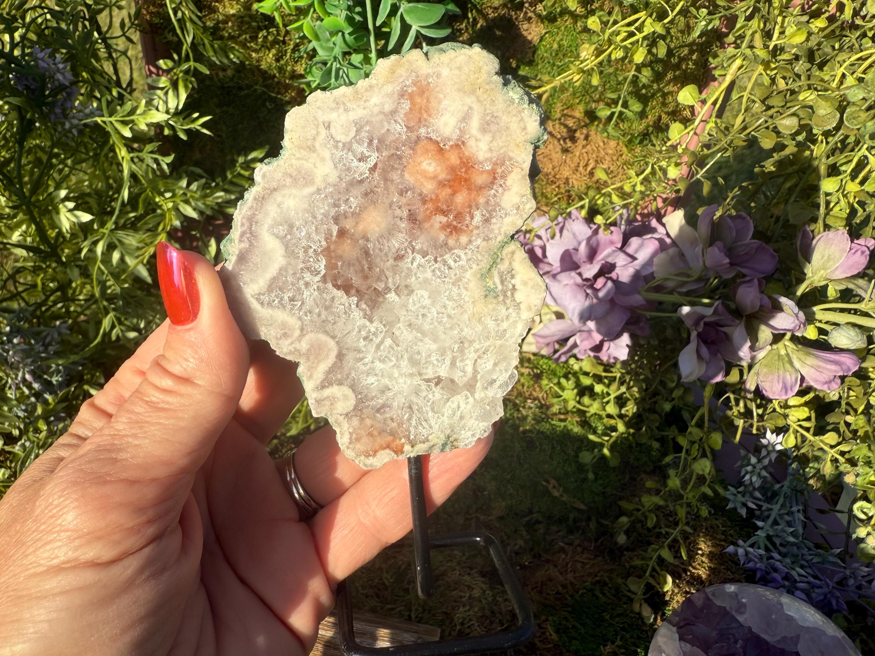 Flower agate's metaphysical properties focus on encouraging personal growth, emotional healing, and new beginnings. It is believed to nurture potential and dreams through its connection to the heart chakra (for compassion) and root chakra (for grounding), fostering emotional balance and a sense of stability. The stone is associated with bringing a gentle, feminine energy that supports one on their healing journey, helping them "blossom" into their full potential.