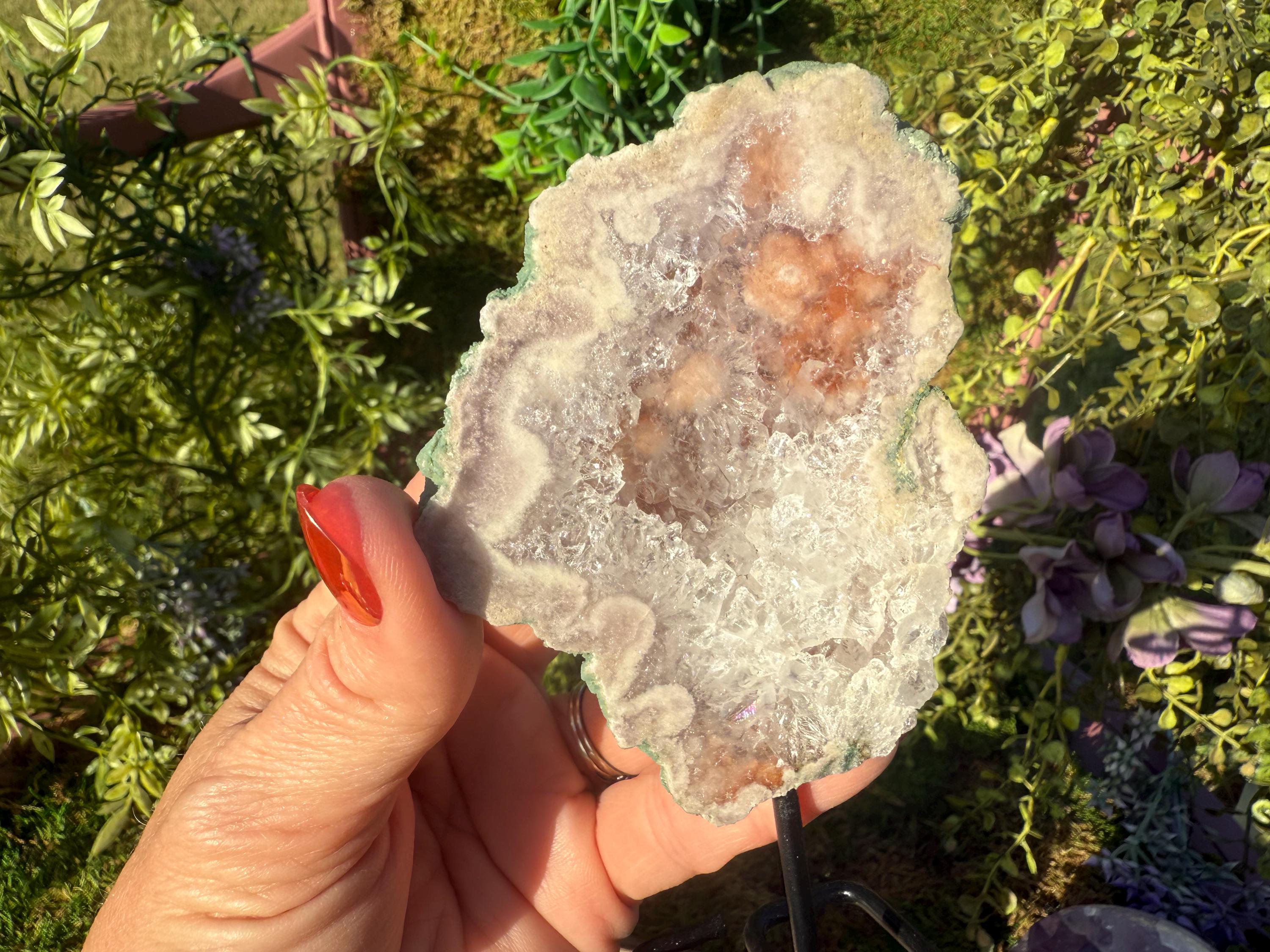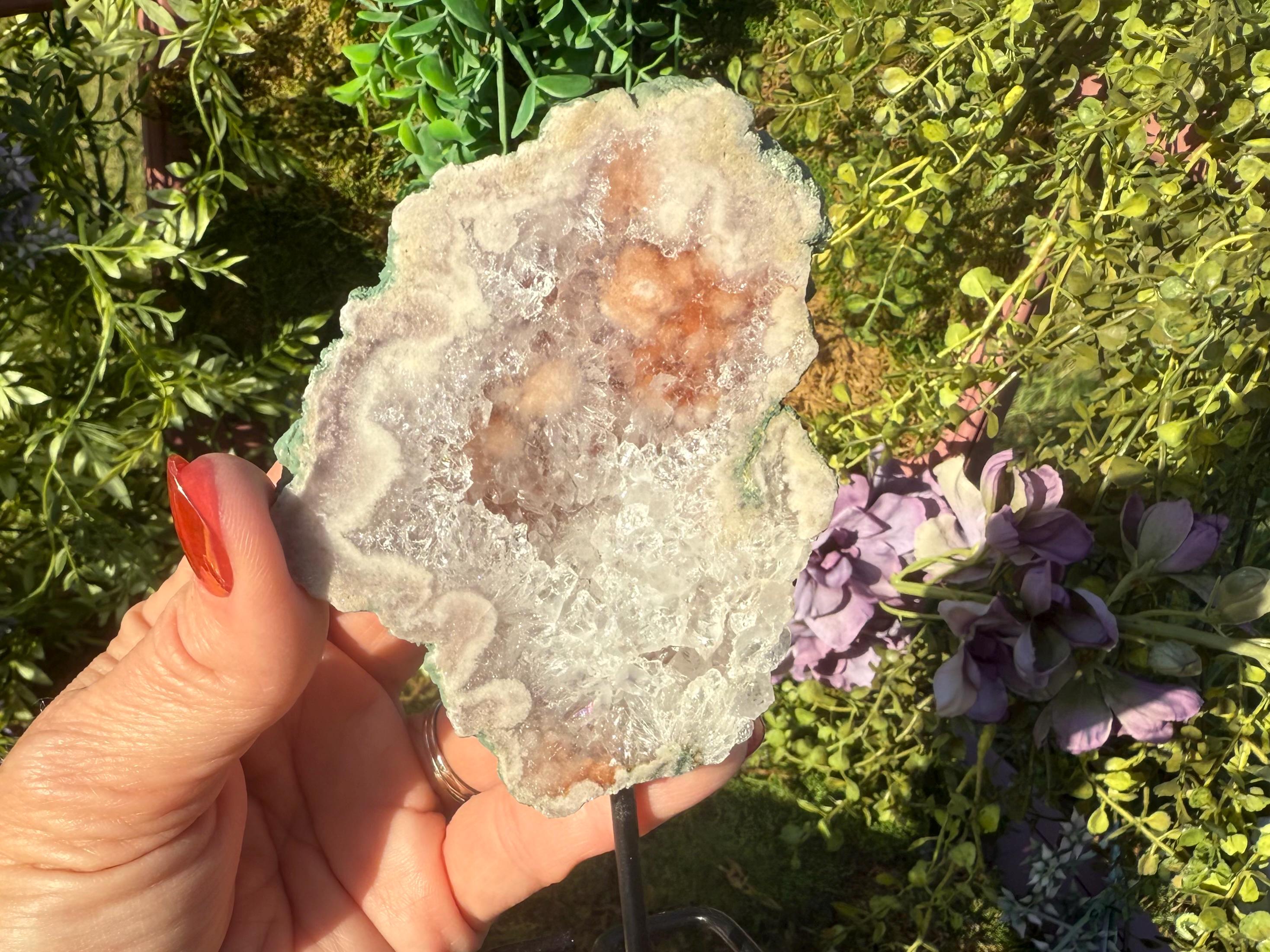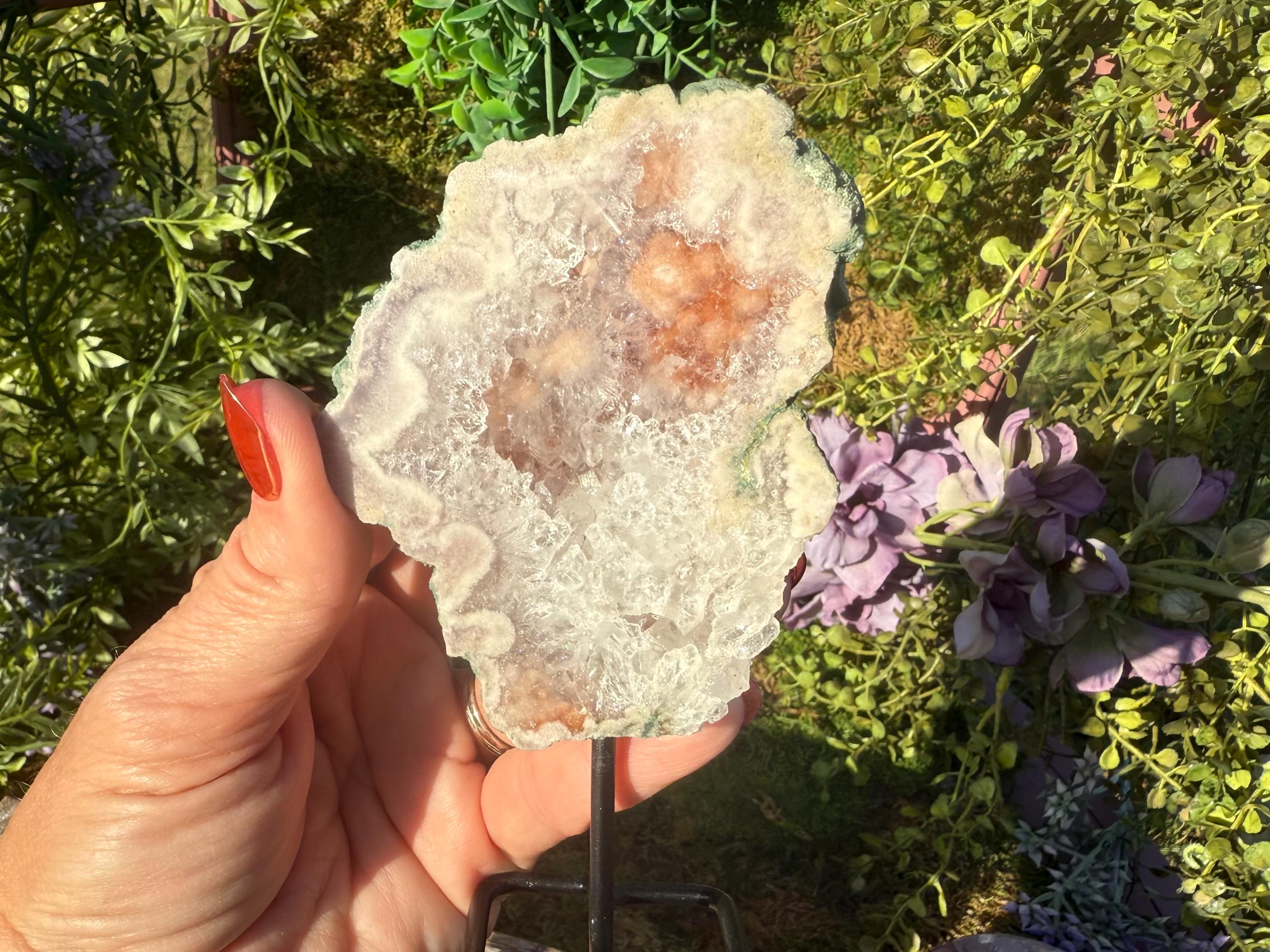 Flower agate's metaphysical properties focus on encouraging personal growth, emotional healing, and new beginnings. It is believed to nurture potential and dreams through its connection to the heart chakra (for compassion) and root chakra (for grounding), fostering emotional balance and a sense of stability. The stone is associated with bringing a gentle, feminine energy that supports one on their healing journey, helping them "blossom" into their full potential.