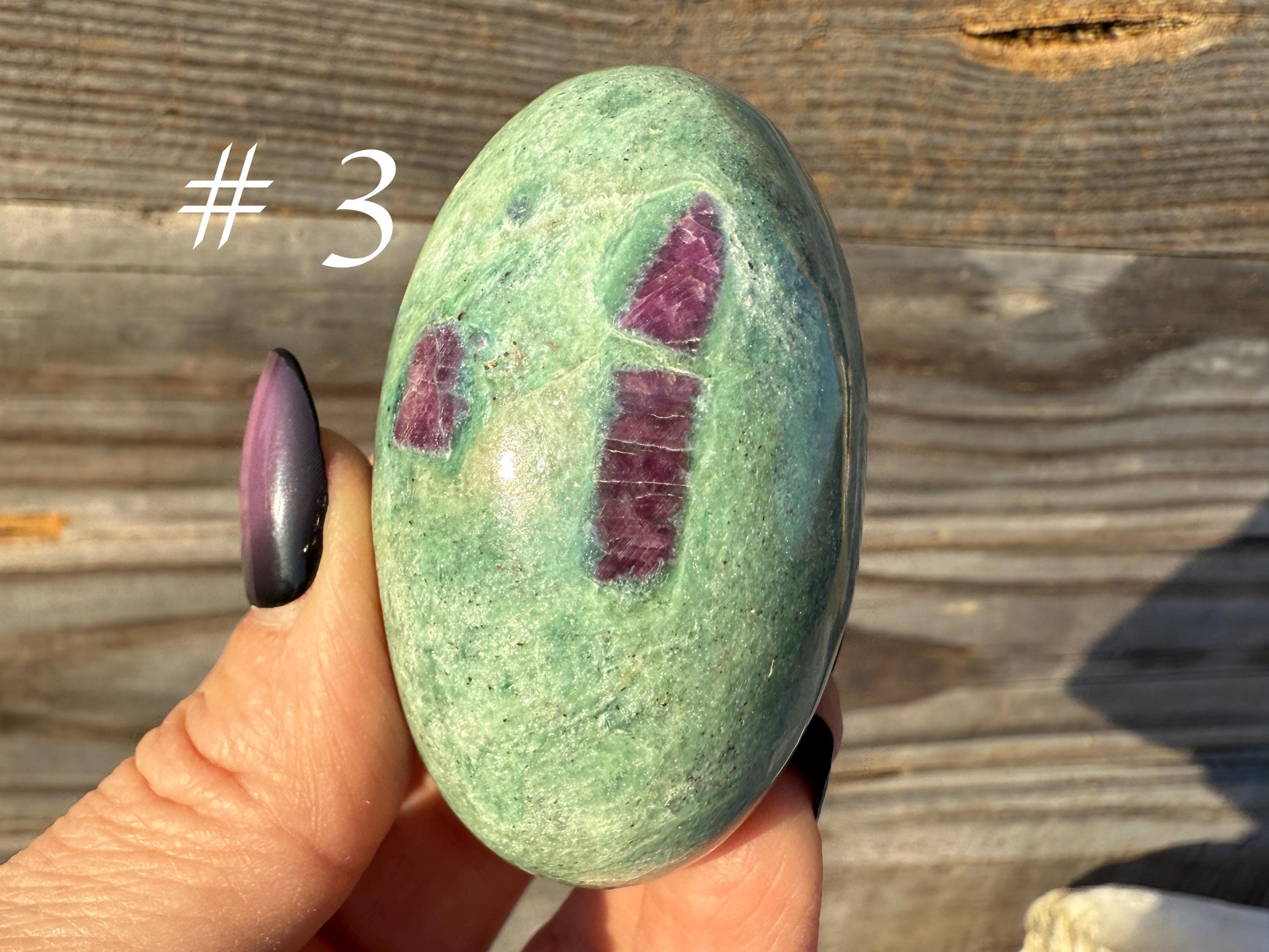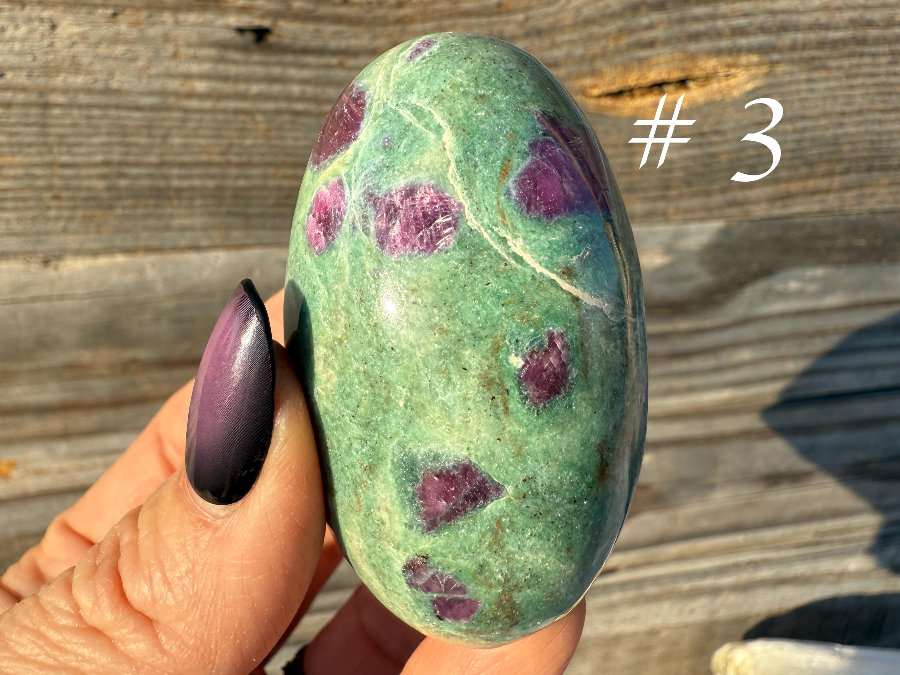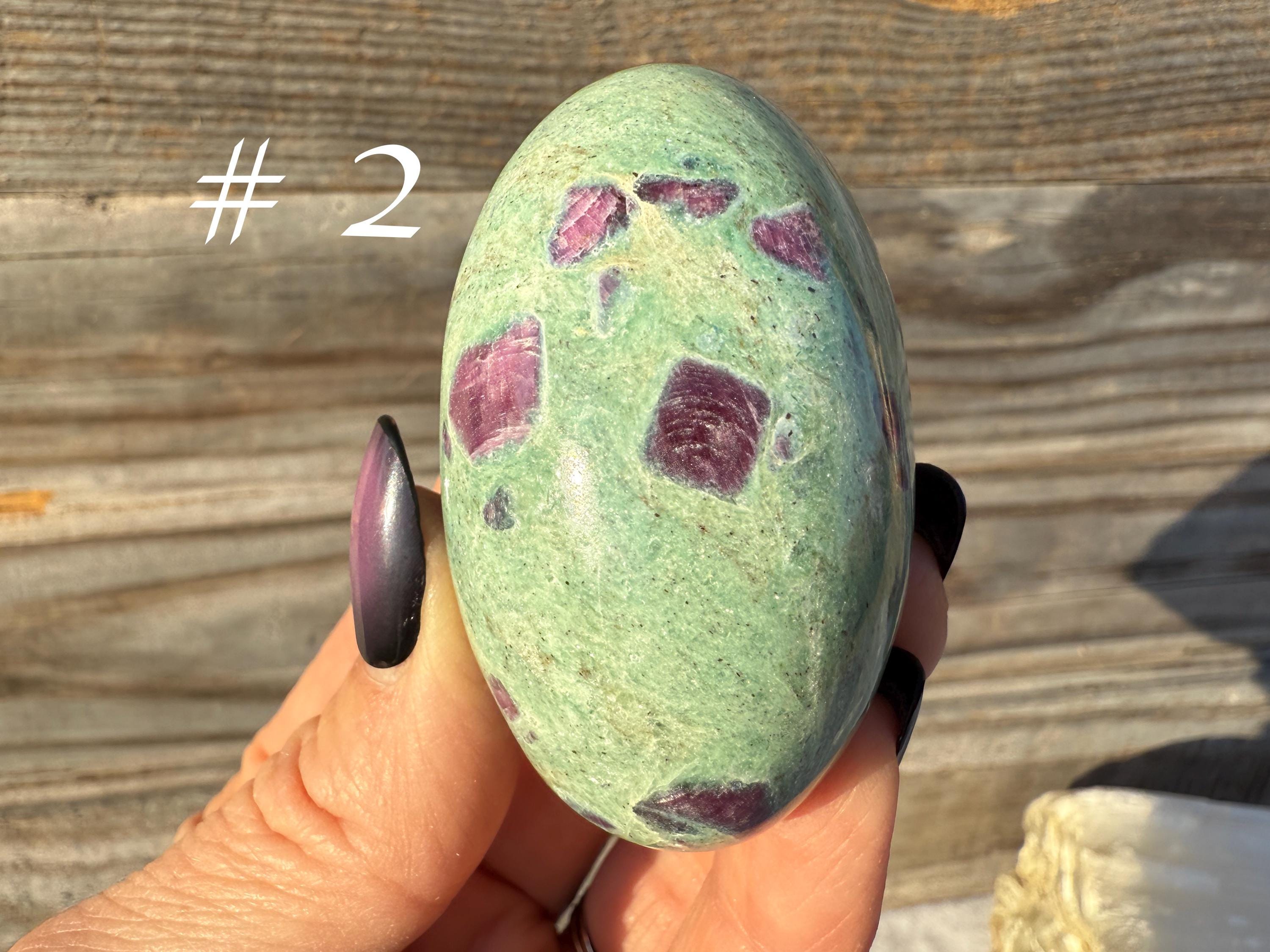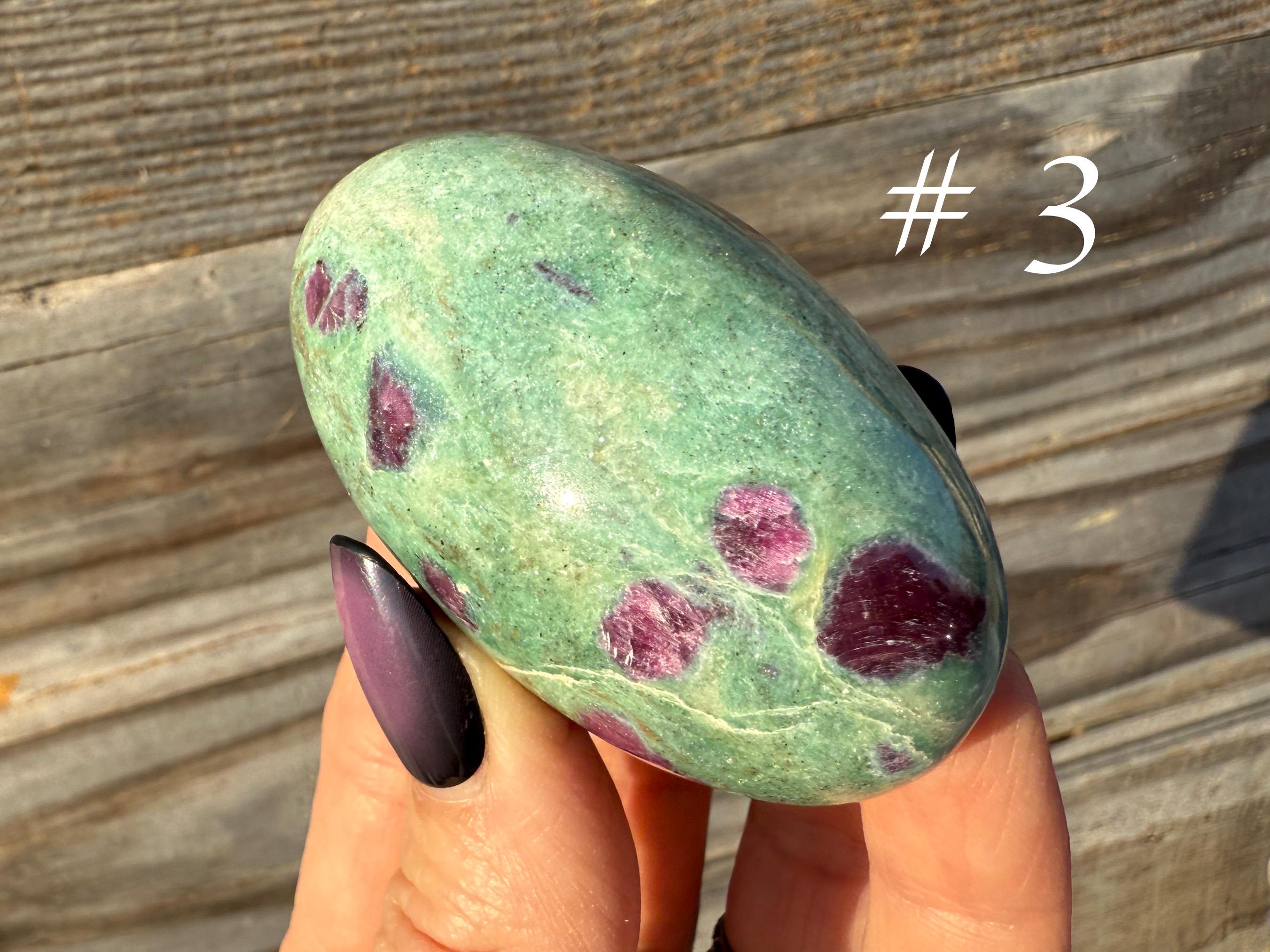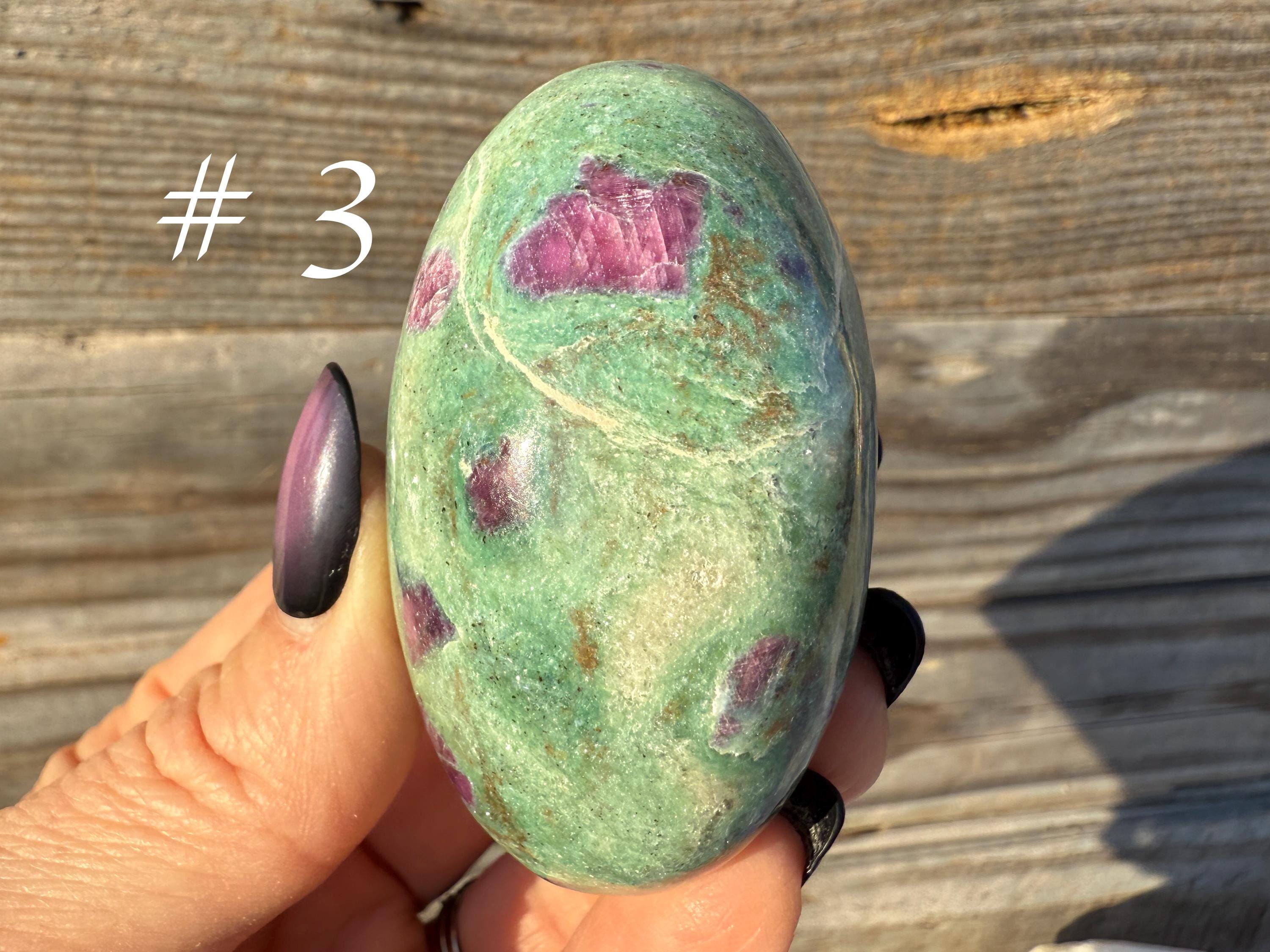 These unique stones combine vivid color, natural patterning, and gentle shimmer, making them perfect for collectors, photography, or display. Each piece is one of a kind, highlighting the distinctive mix of ruby and fuchsite that forms deep within the Earth.