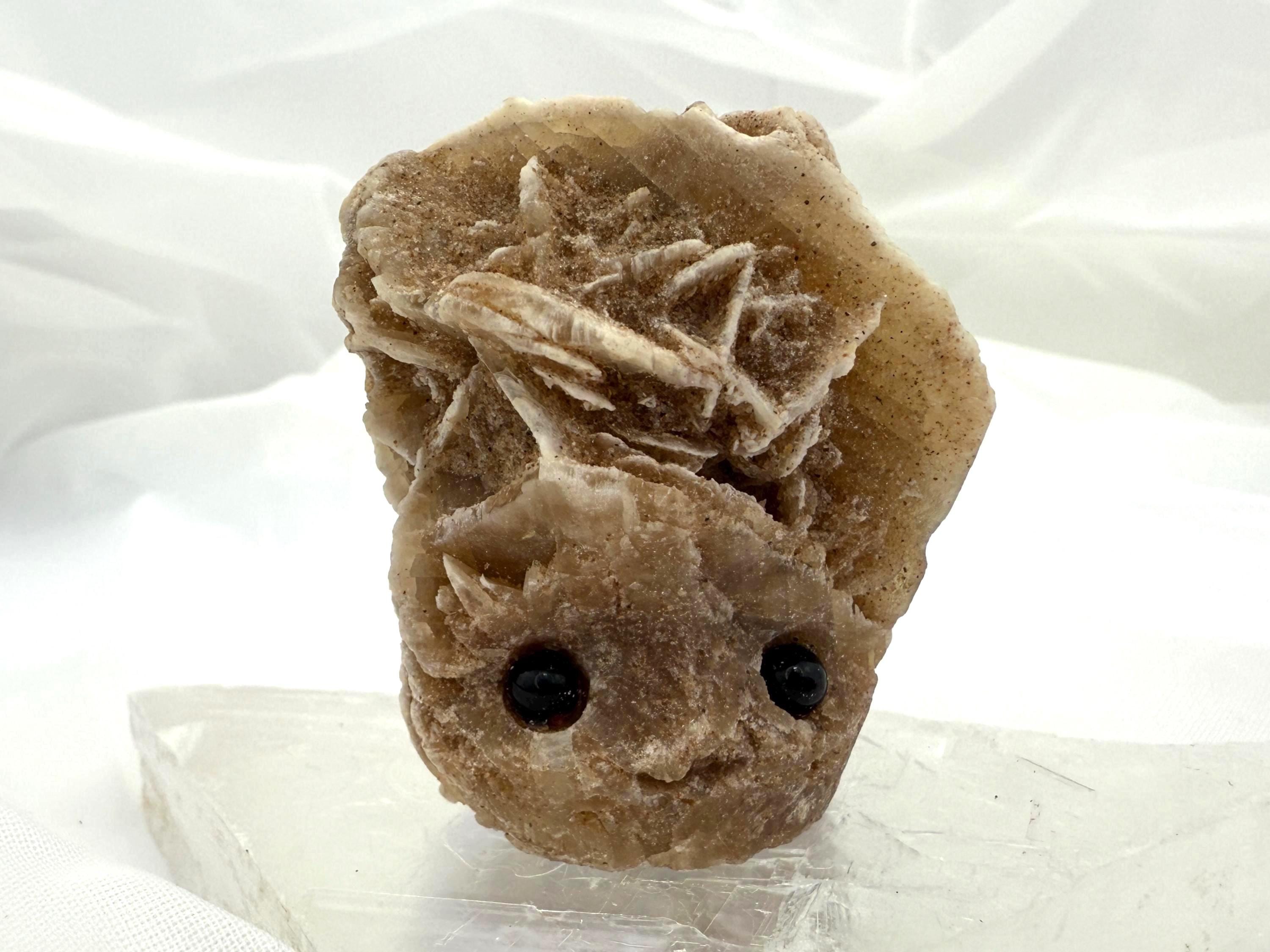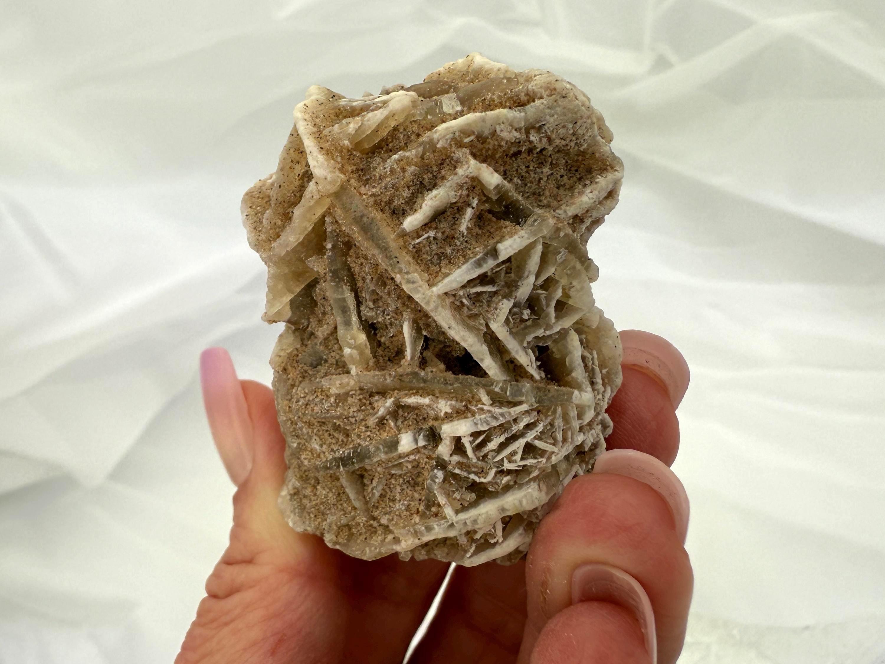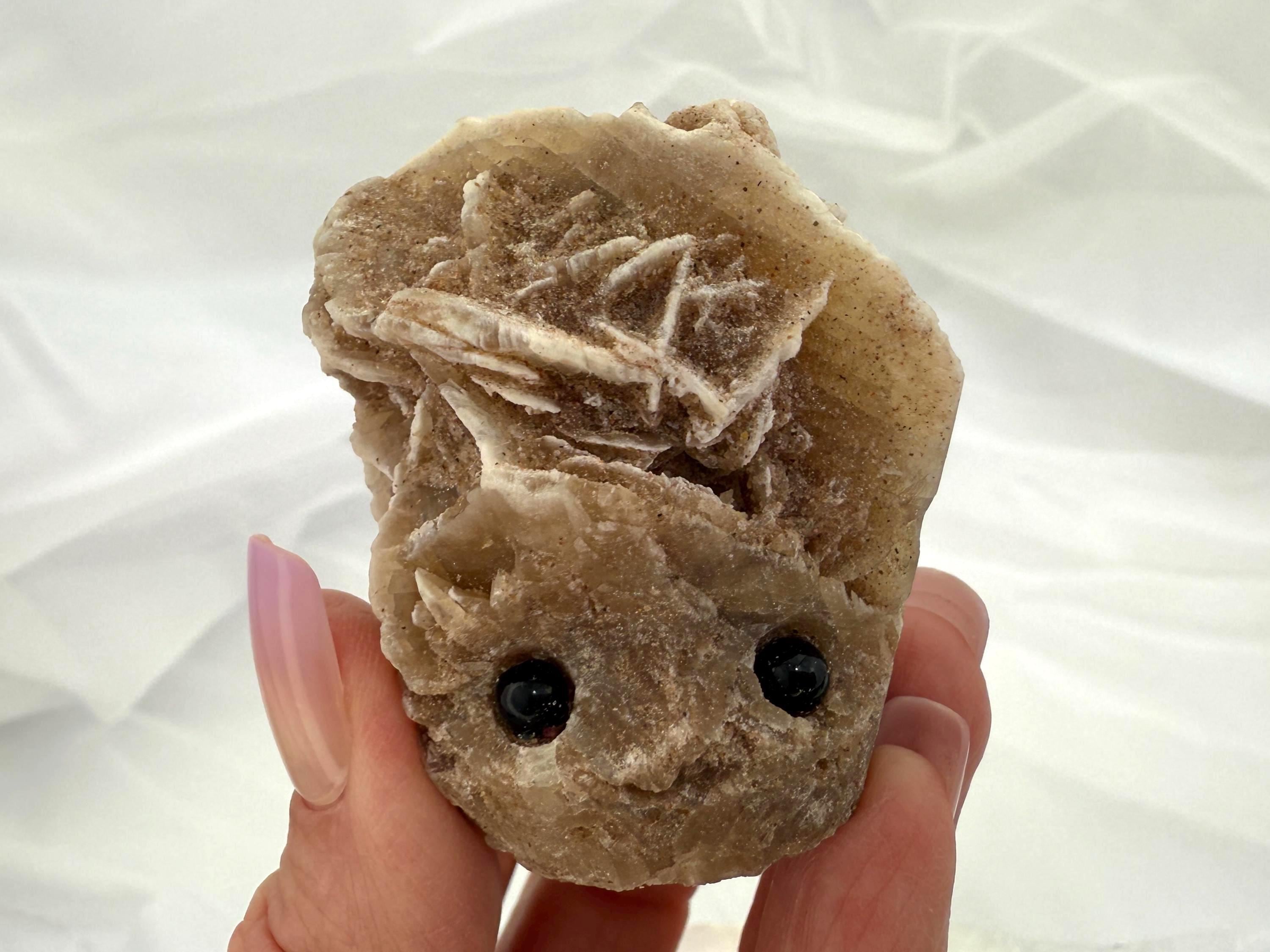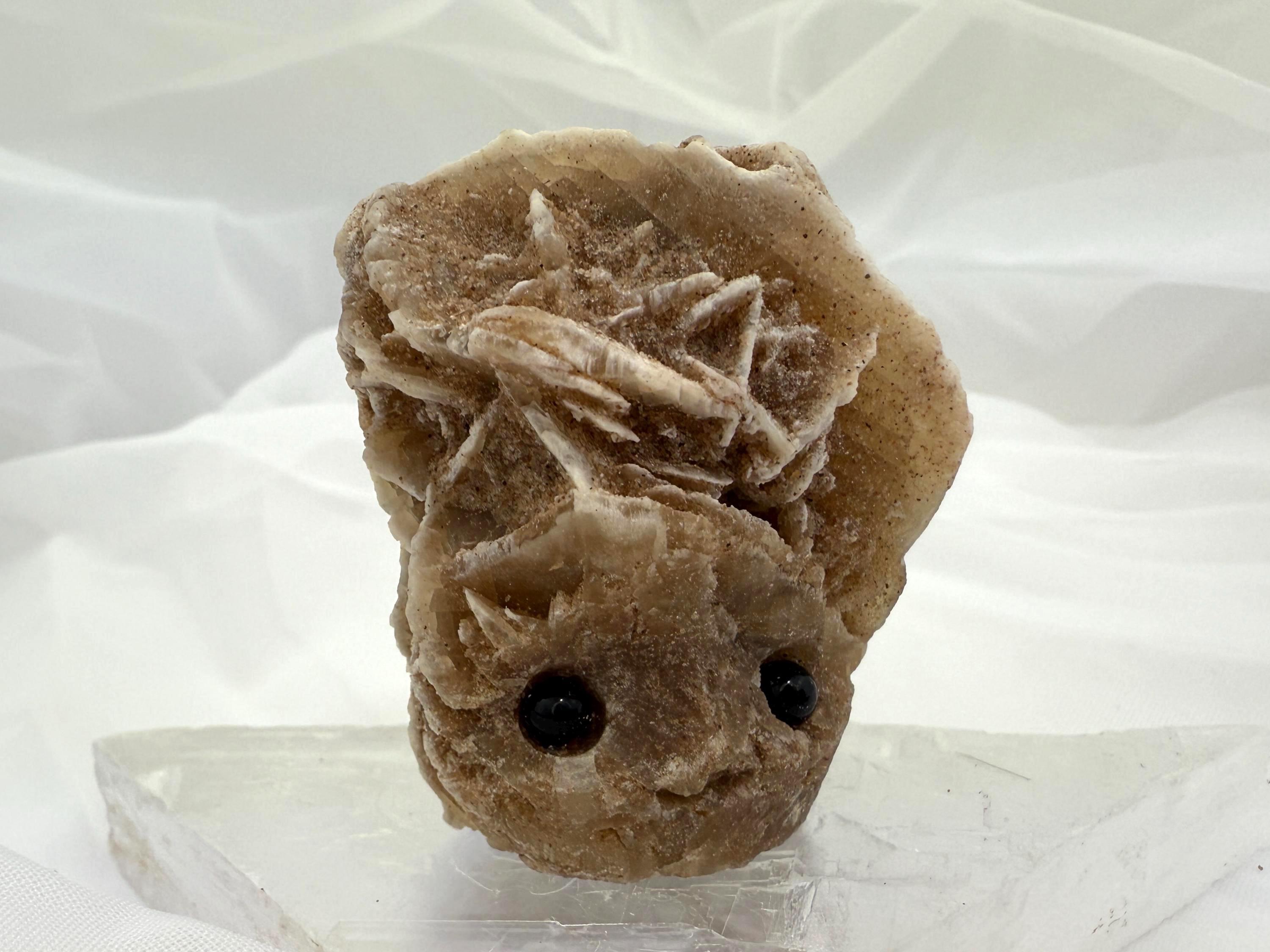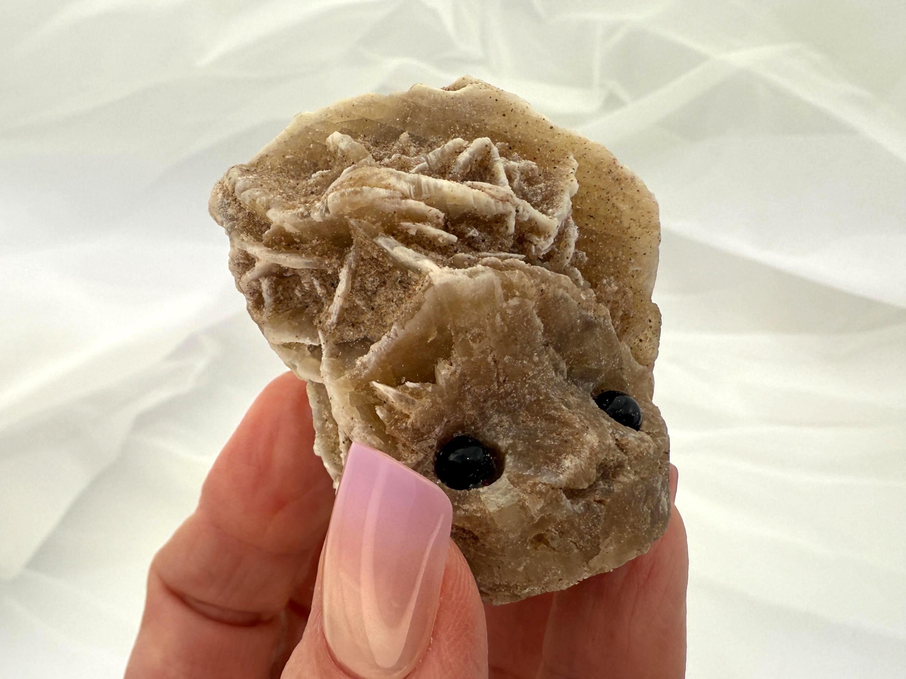 Meet your new Desert Rose Selenite Crystal Buddy — a naturally formed rosette-shaped mineral with soft beige tones and beautiful layered crystal petals. Desert Rose Selenite is formed by wind and sand over time. This desert rose crystal buddy makes an adorable display accent, or a thoughtful gift for a crystal lover.