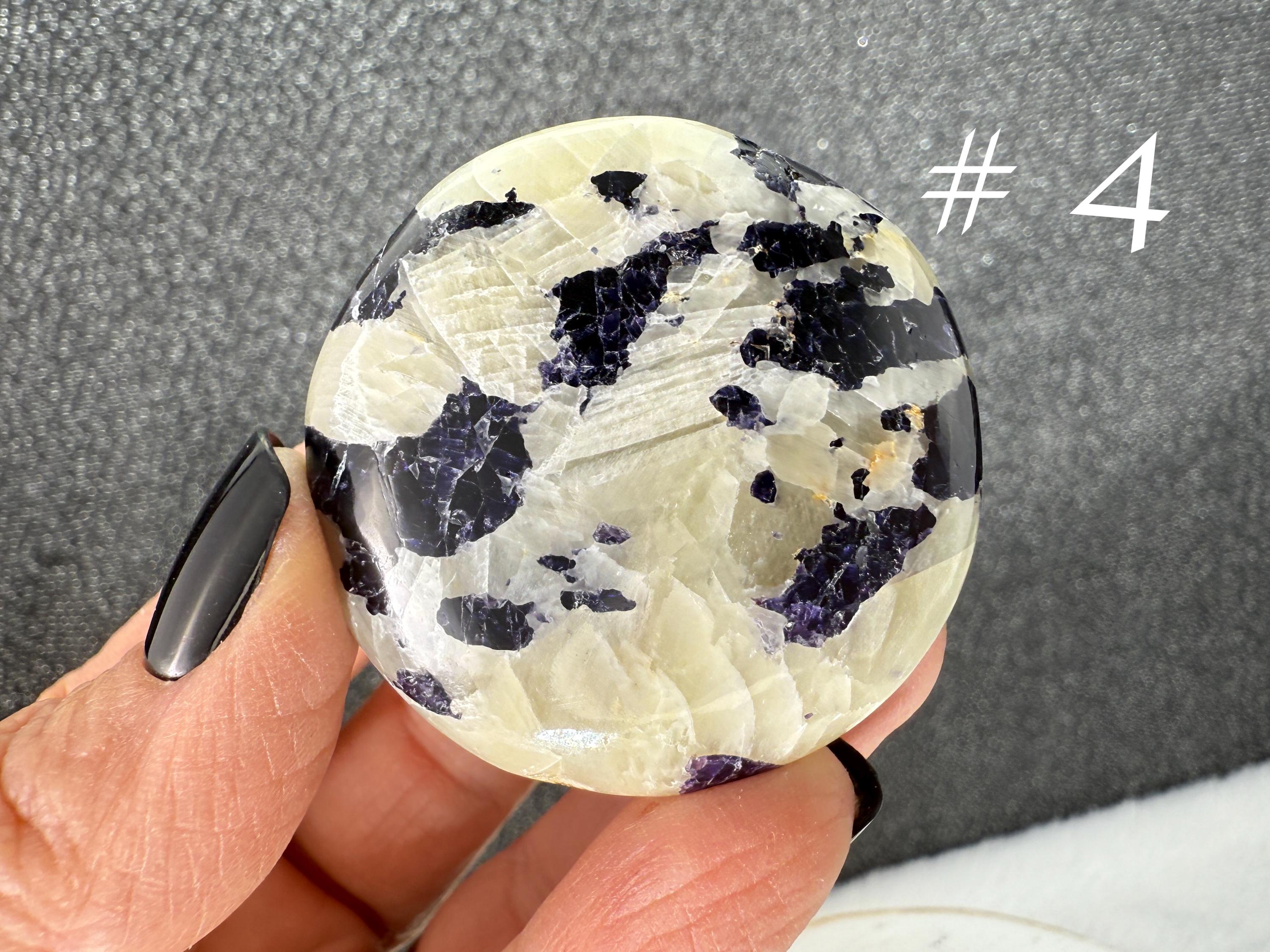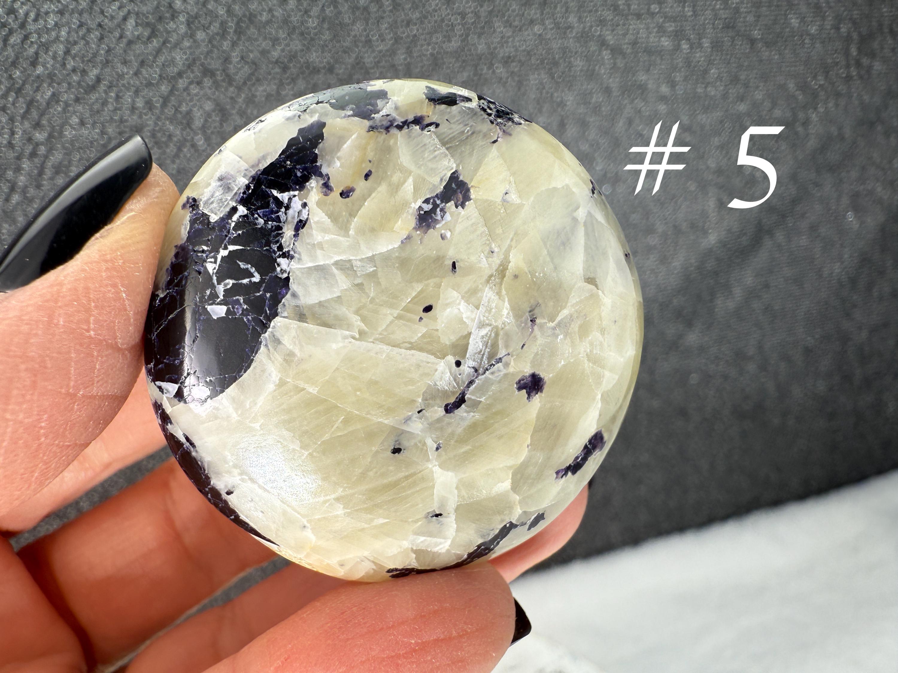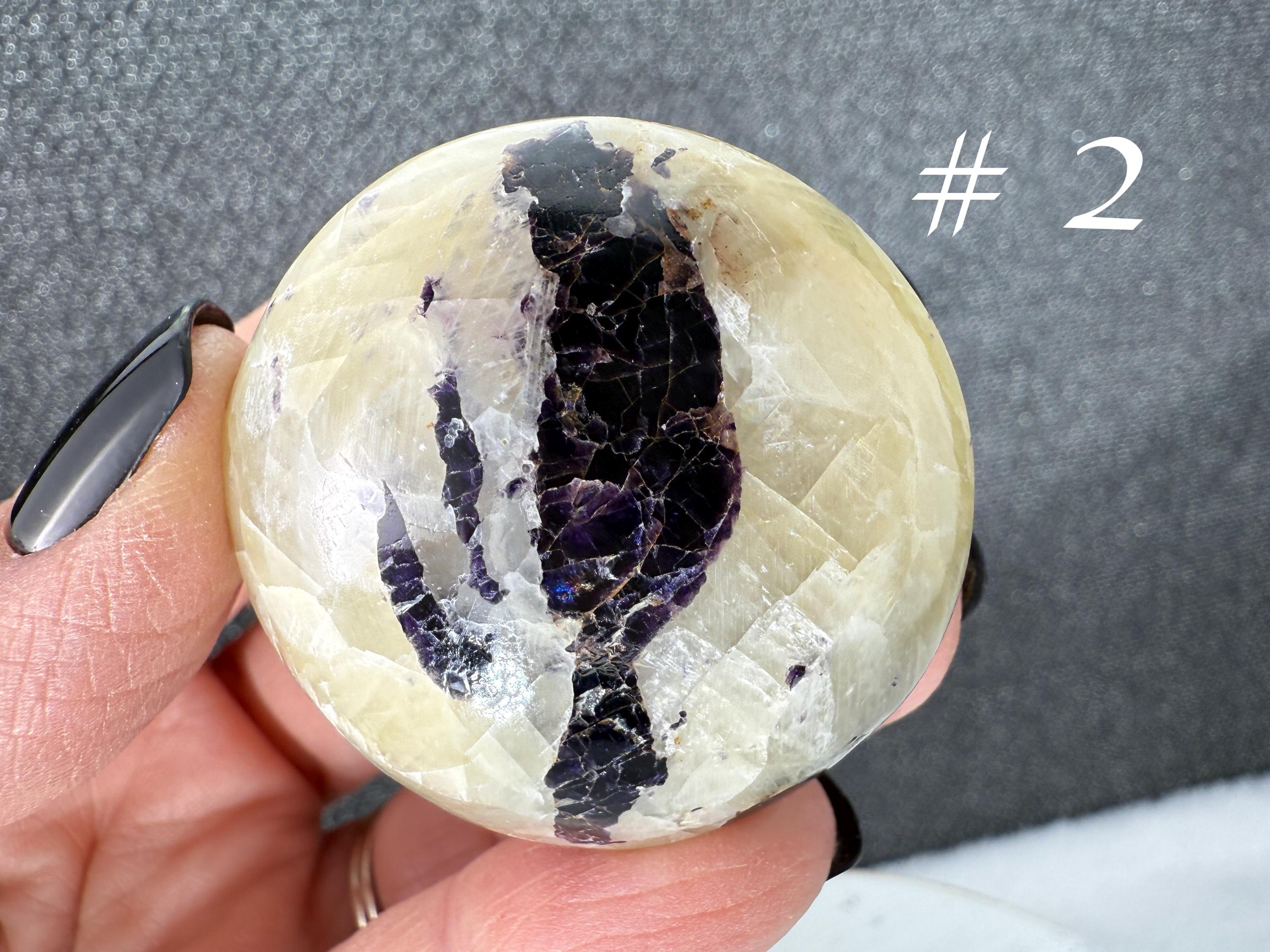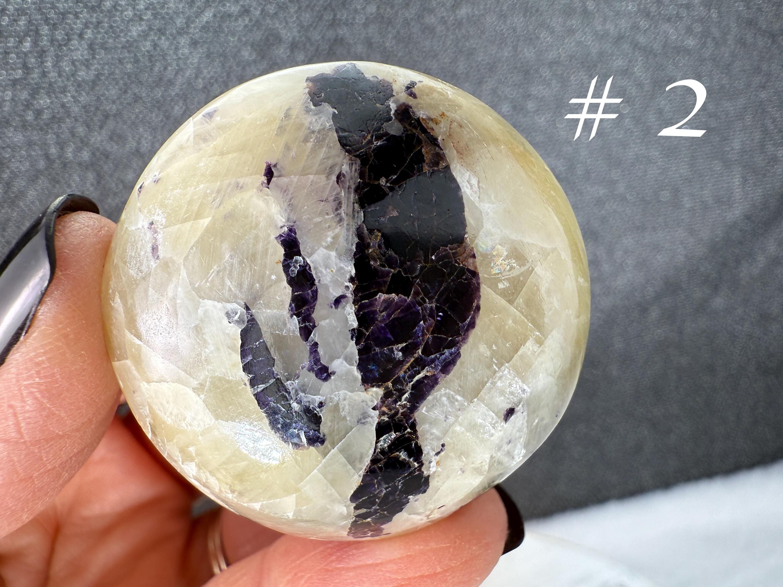 Add rich color and smooth texture to your collection with these beautiful Purple Haze Round Cookie Palm Stones. Each hand-polished piece features deep purple hues in yellow calcite, creating stunning natural contrast. The round “cookie” shape fits comfortably in your hand, making these stones perfect for display, pocket carrying, or gifting.